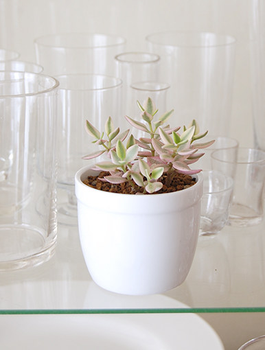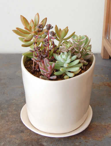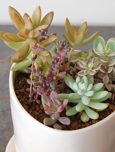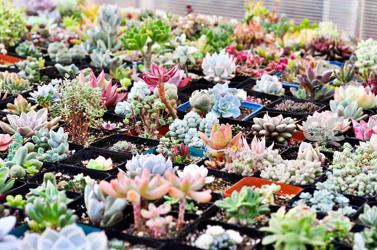 Поту сочные растения в сочетании с горшечными цветами и мякоть
