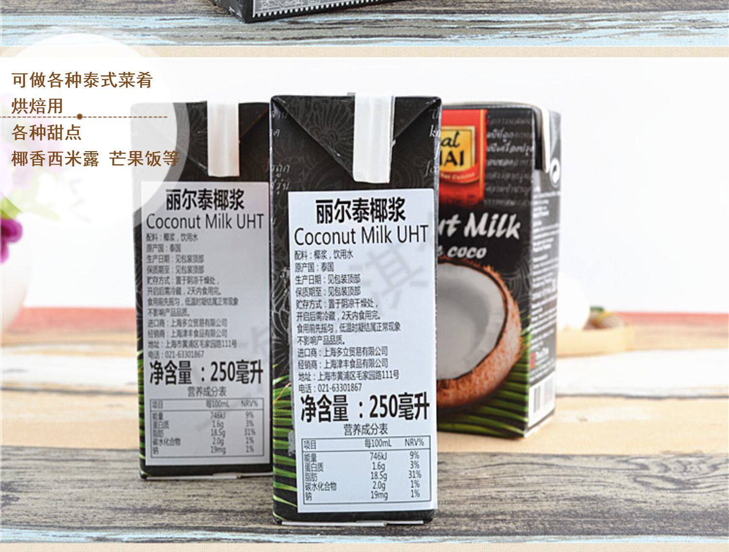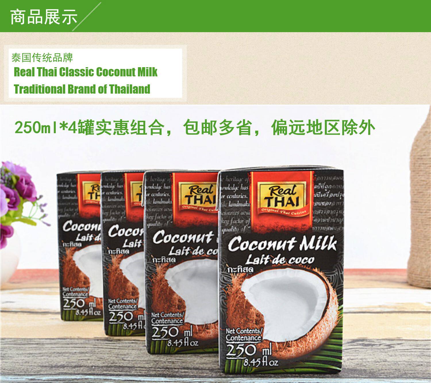 - 250 мл*4 коробок (белая коробка легкое кокосовое молоко)