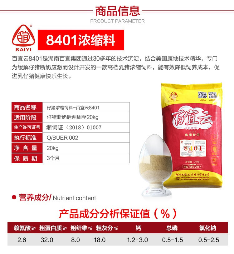 Baiyi Cloud Pig Feed 8401 Свиньи 40%концентрированные материалы для сохранения пищи содержит импорт рыбной свиньи, чтобы купить десять
