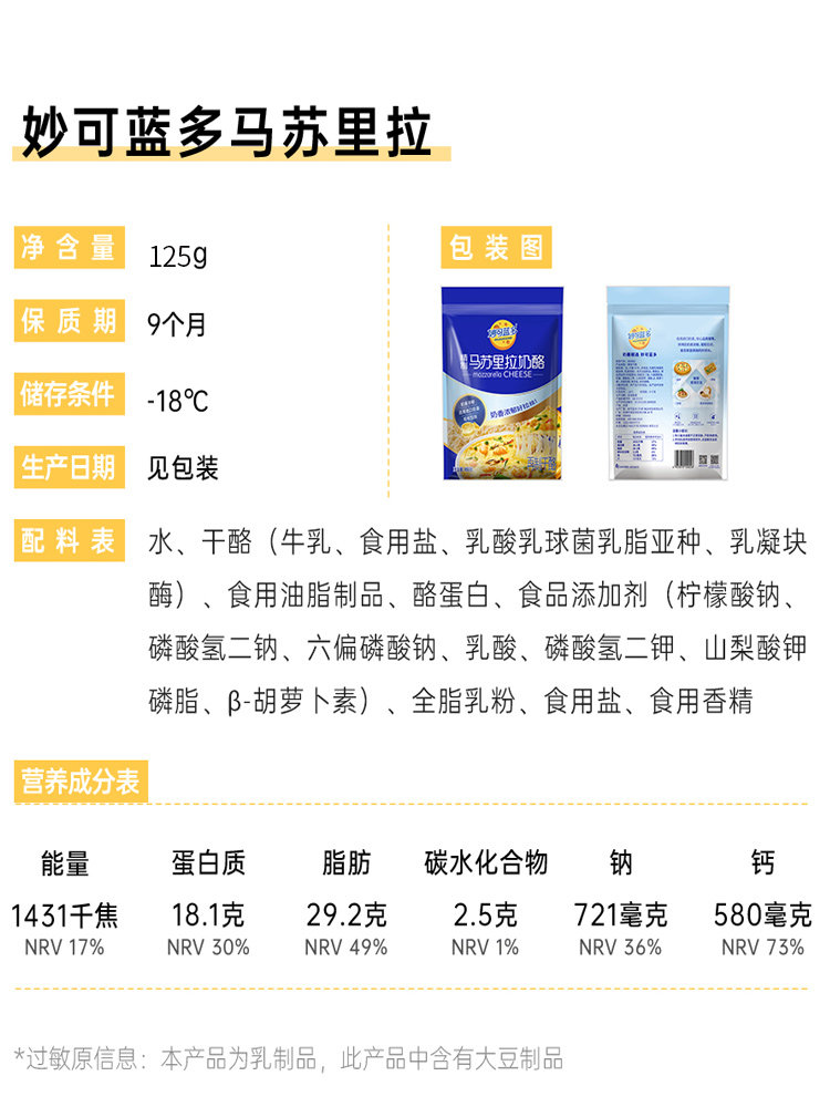 妙可蓝多 Marri -la грудь сломанная домашняя пицца материал запеченные рисовые точки горячего сыра 125 г