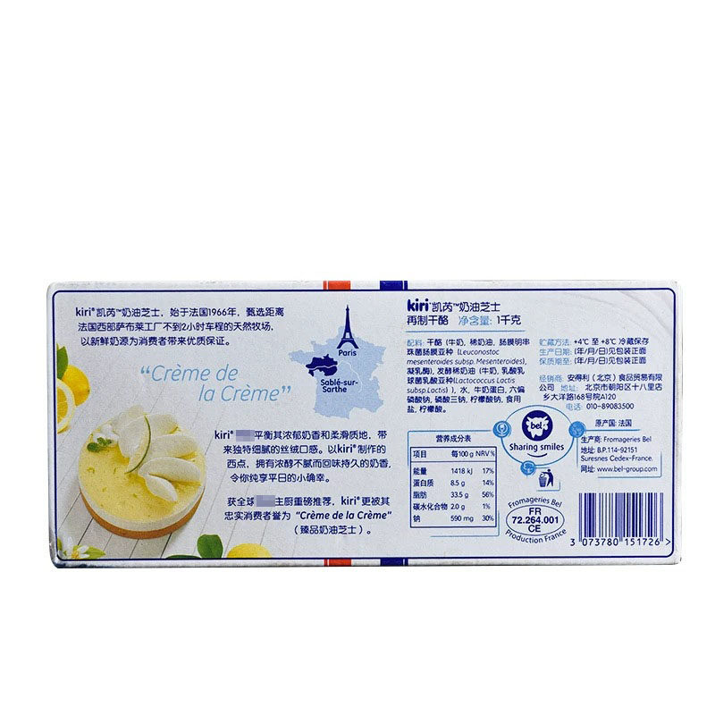 Керри Кири Сливо -сыр 1 кг Кей Руй сыр сыр мусс Обуйт Пинг Франция Импортированный материал для выпечки