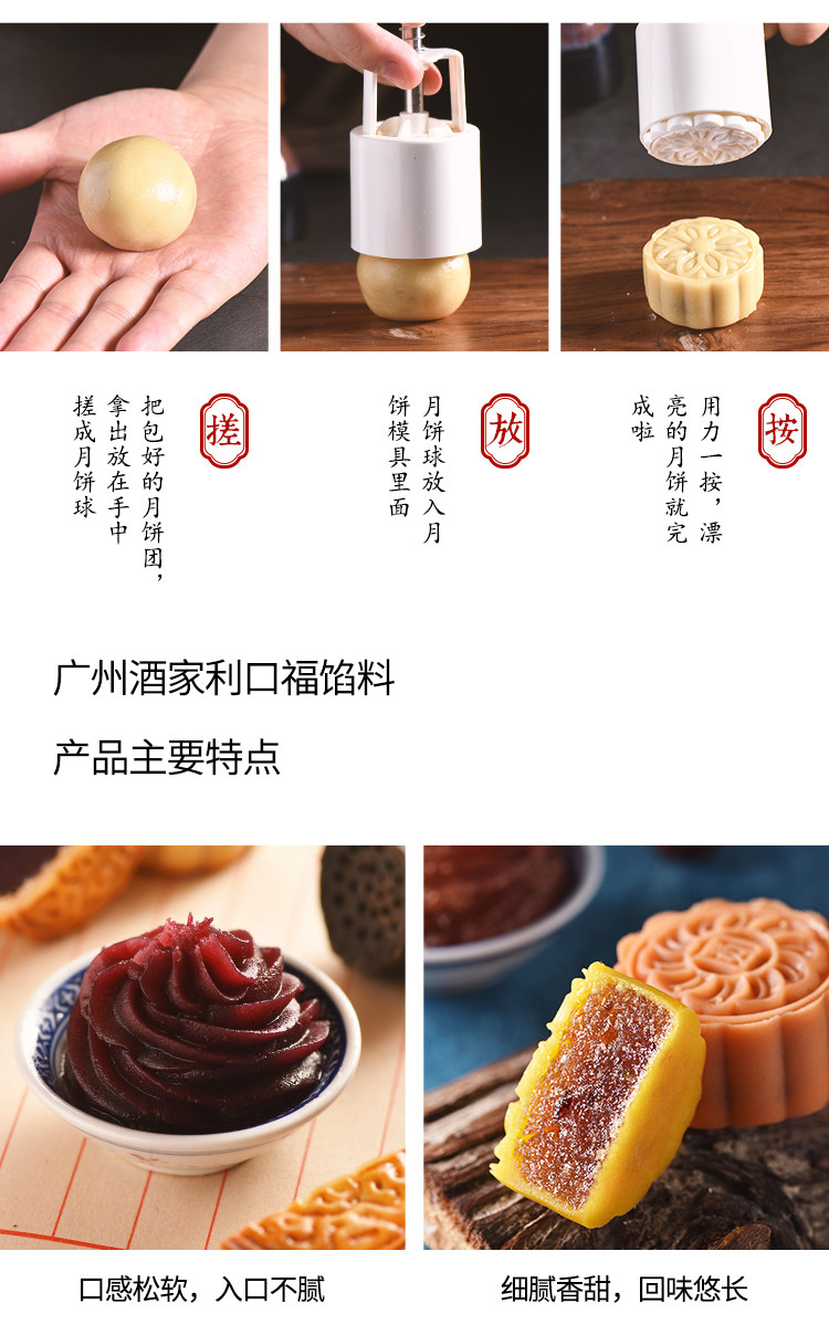 Ресторан ресторана Гуанчжоу Лунный Кейк, наполнение 500 г льда, молодая сахарная красная фасоль, яичный желток, выпечка лунного пирога, начинка грязь