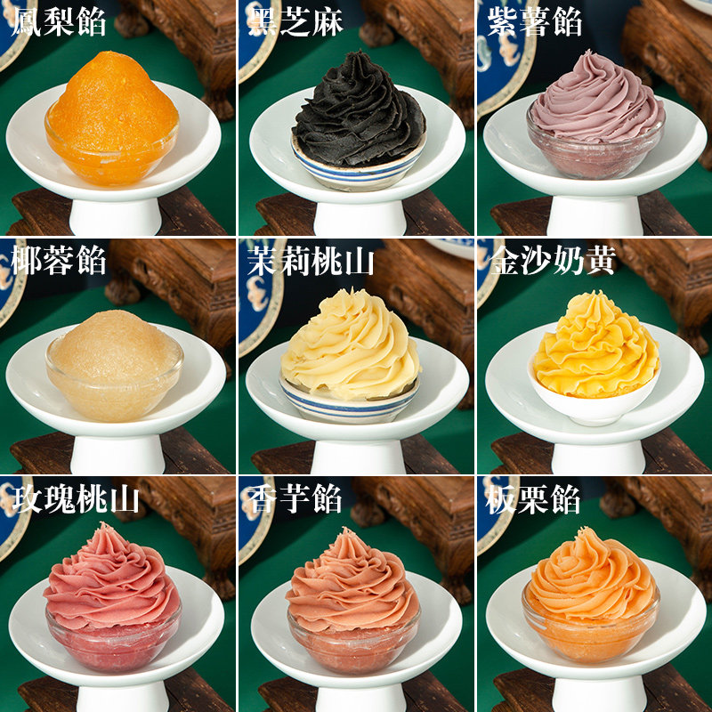 Молоко желтый черный кунжут фаршированный каштановый каштановый каштановый кокосовый наполнение фиолетового картофеля таро и ледяная кожа Коммерческий ананас не -низкий сахар