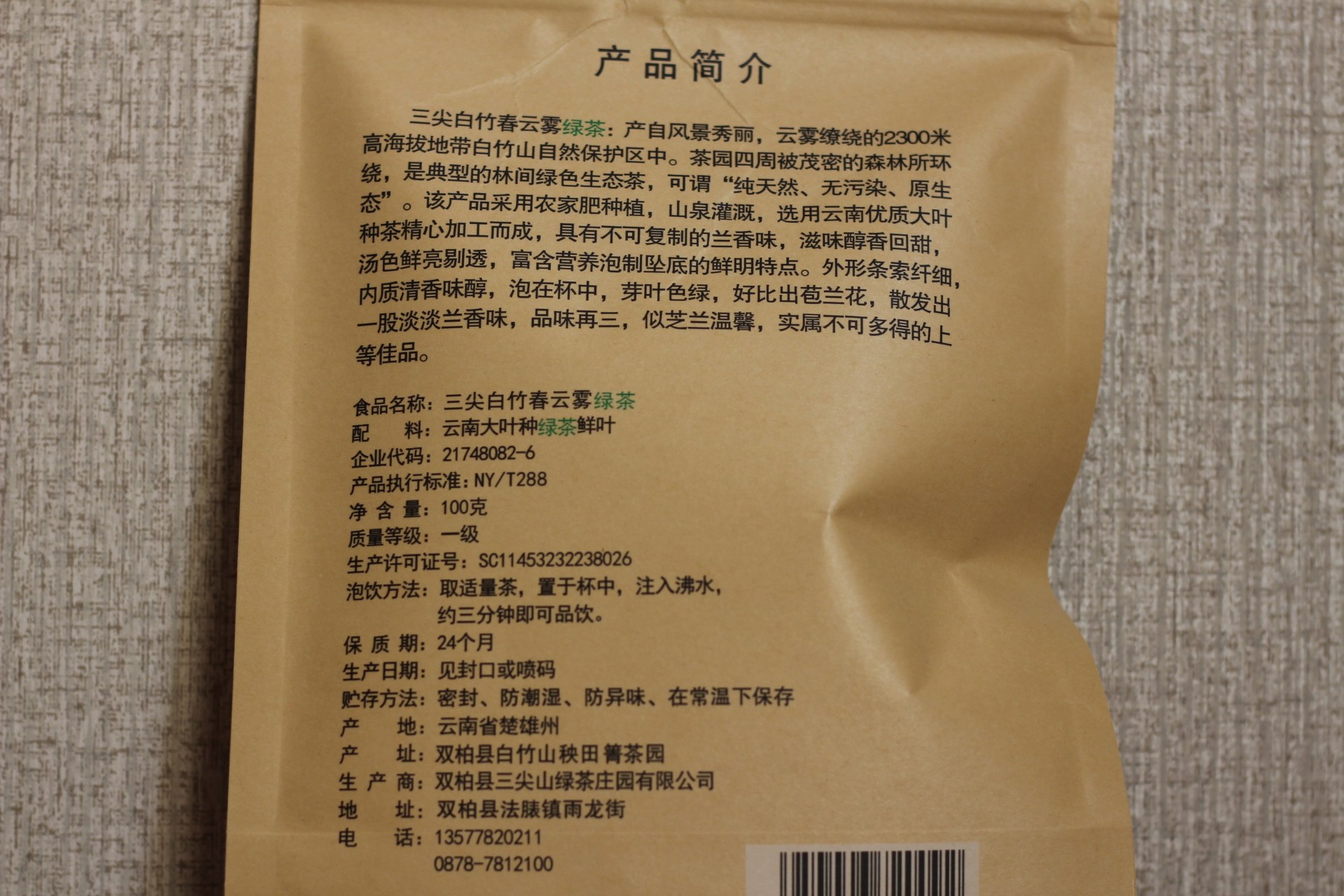 Юньнан Чуксионг Шуанбай Байжху горы облака зеленый чай весенний чай жареный зеленый специальный чайный лист Лист уровни 100 г прямые продажи