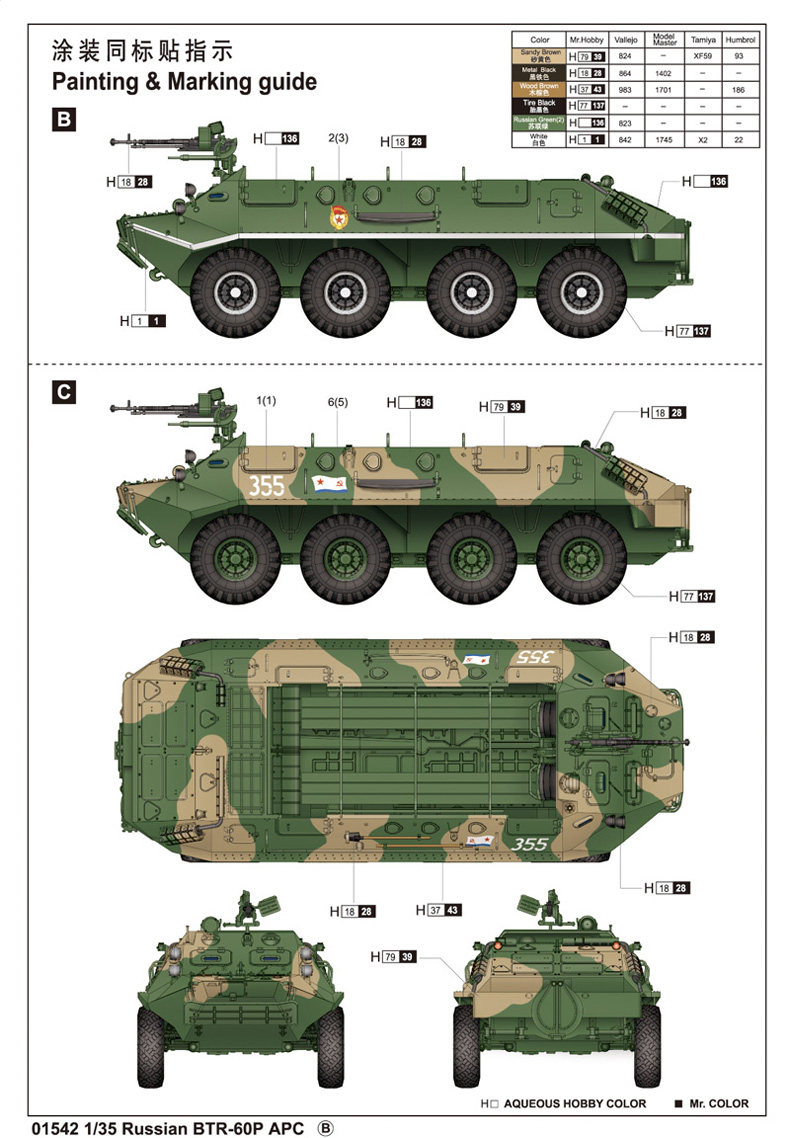 Маленькая рука 1/35 русская бронированная транспортная машина Btr-60p 01542