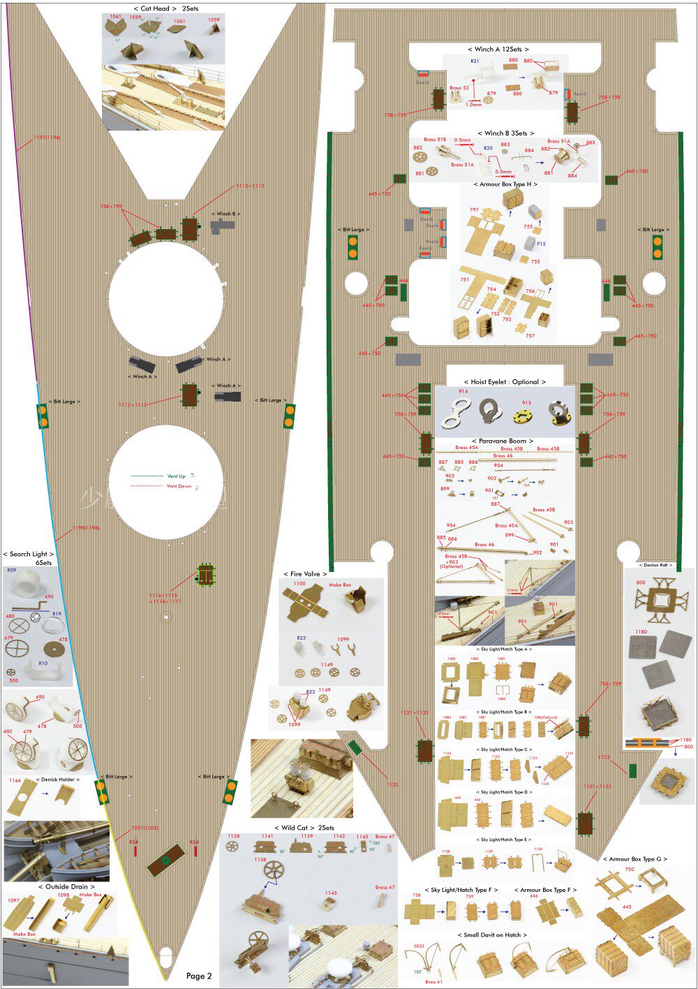 Смола 94 детали набор / латунные винты / деревянная палуба Staind для одного комплекта корабля
