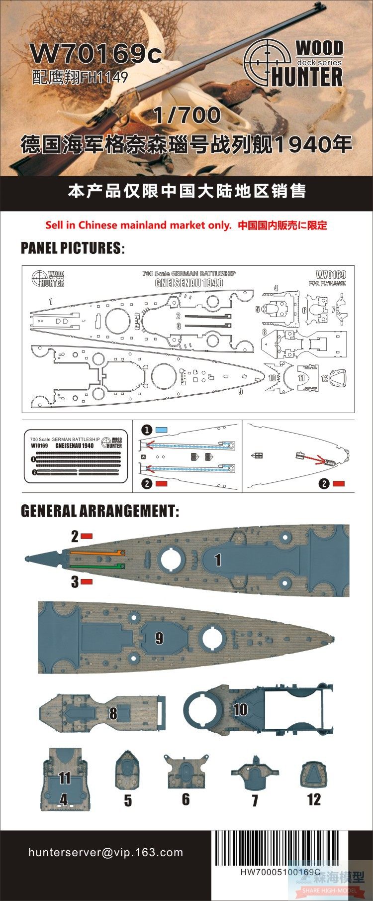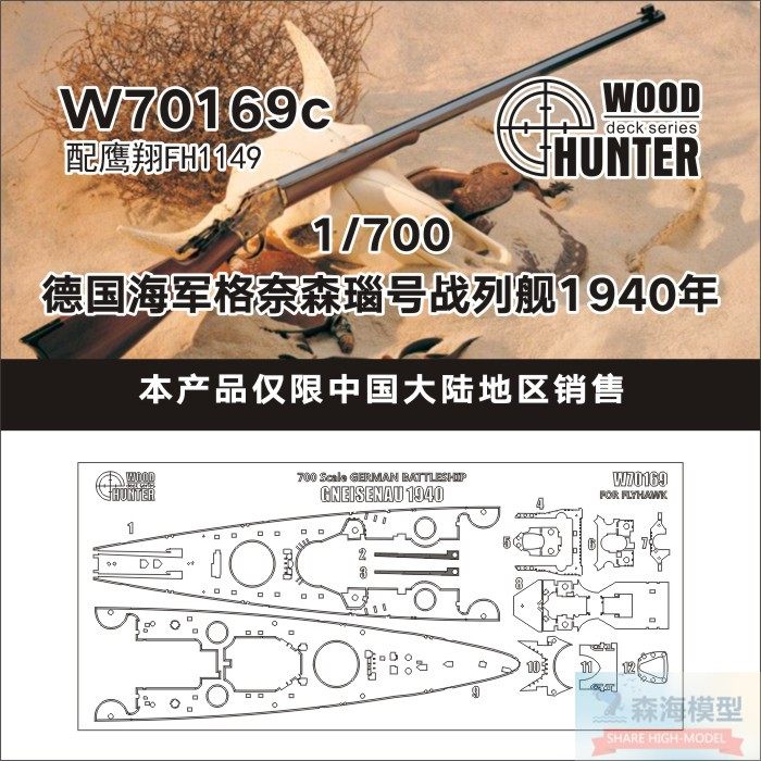 Охотник Хантер W70169 1/700德国海军战列巡洋舰格奈森瑙号木甲板