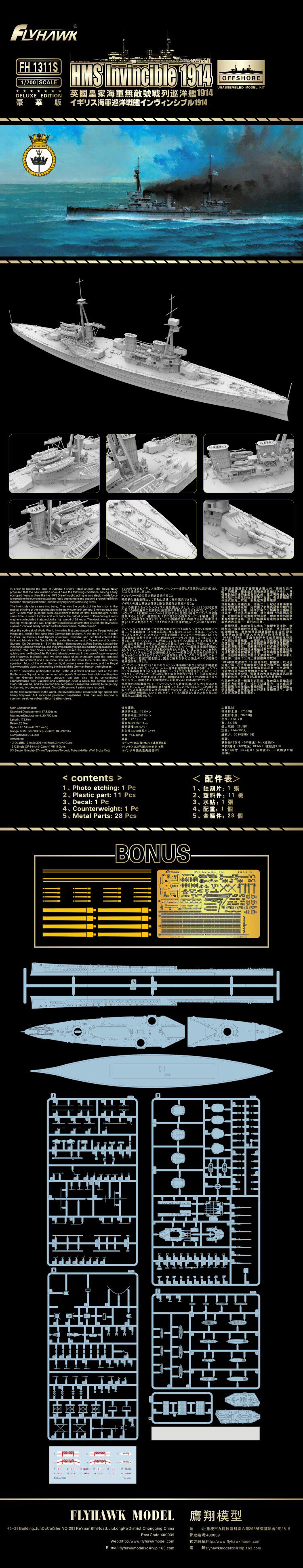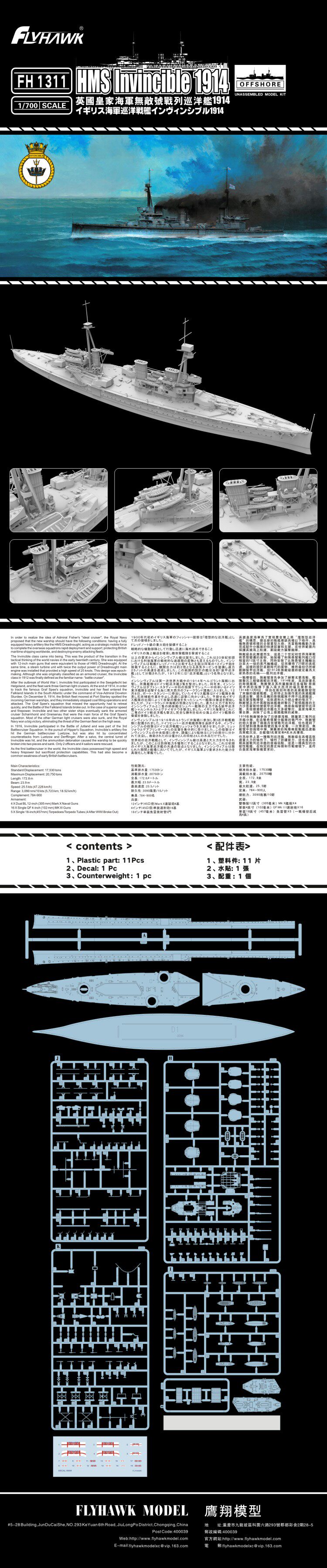 Iron и Sky Eagle FH1311/S 1/700 Британский флот Invincible War Cruise Show 1914