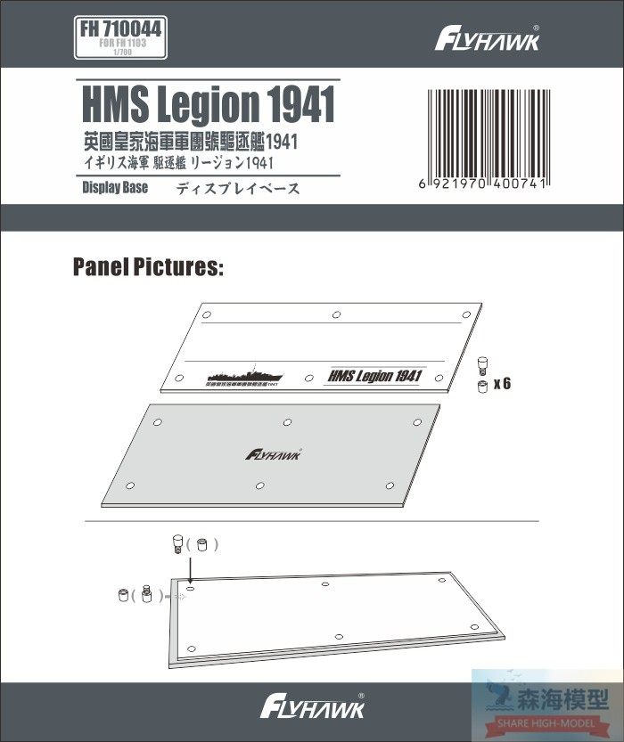 鹰翔Flyhawk FH710044 1/700 Королевский флот Корпус Разрушитель 1941