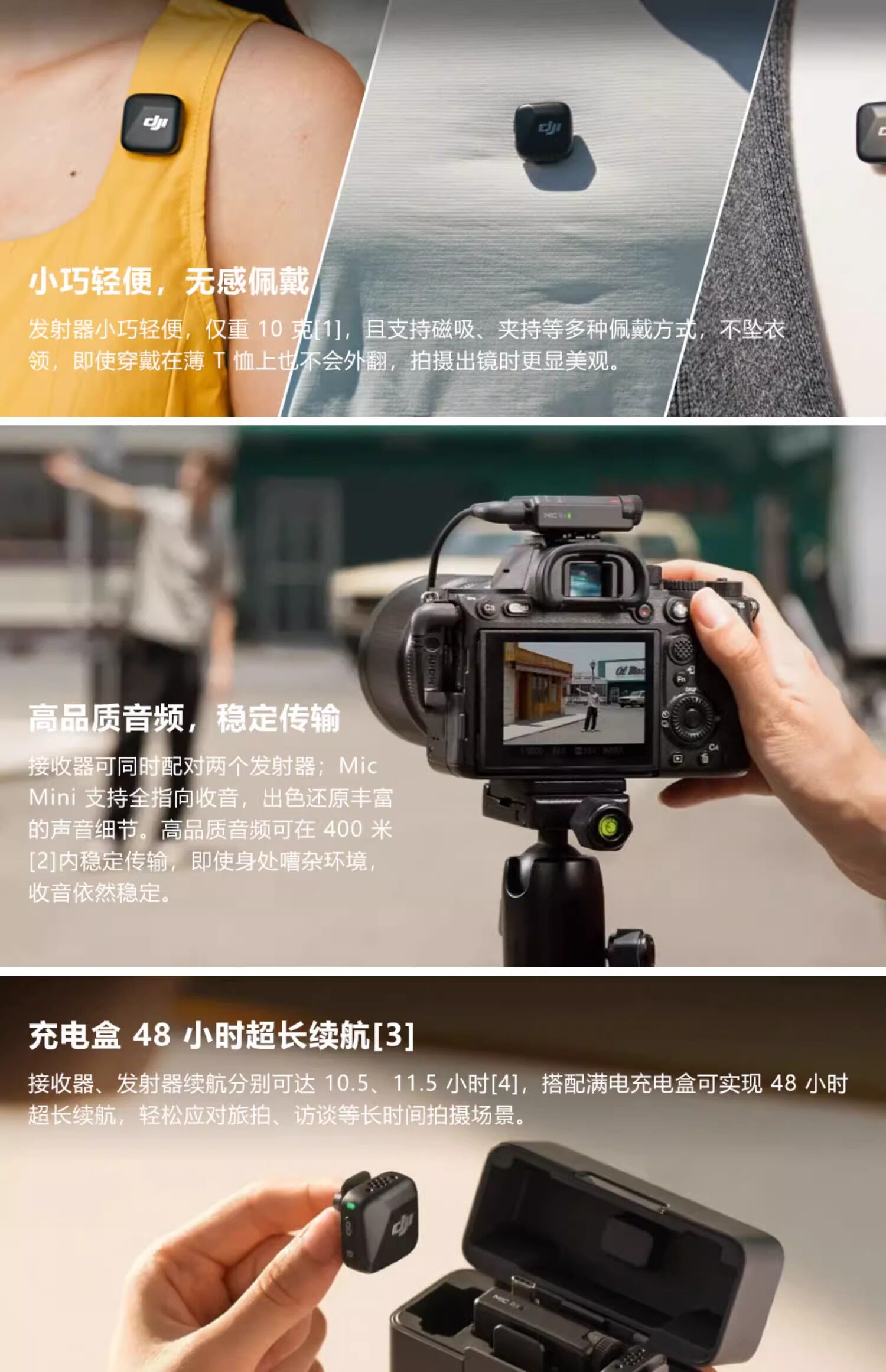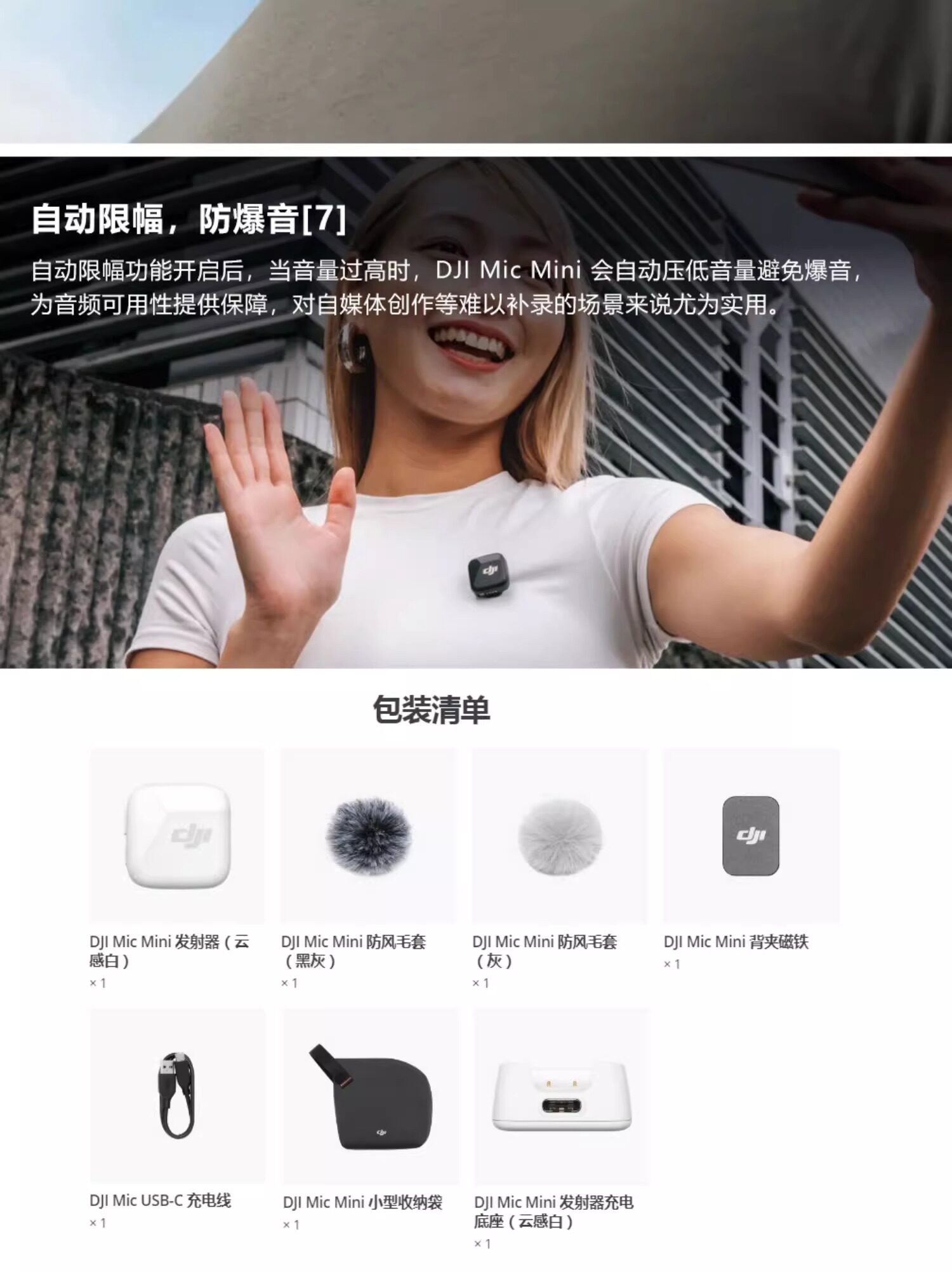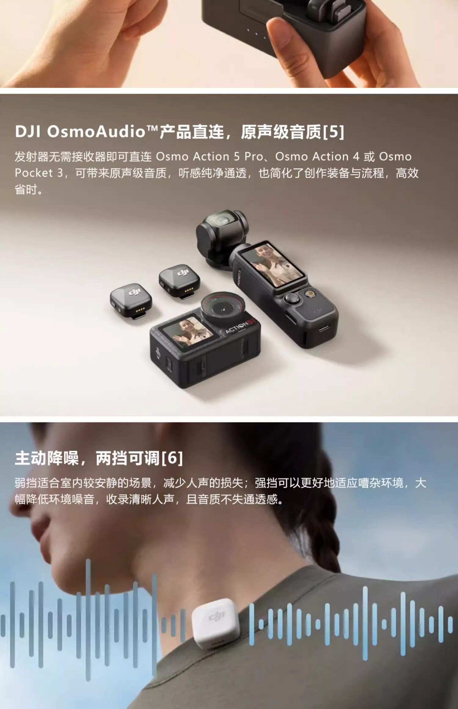 DJI MIC Mini Launcher Mini Беспроводная беспроводная шумоподавляя воротнич