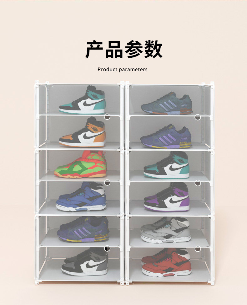 - 1 столбец 6 этажей может положить 6 пары регулировки раздела для обуви, чтобы положить ботинки