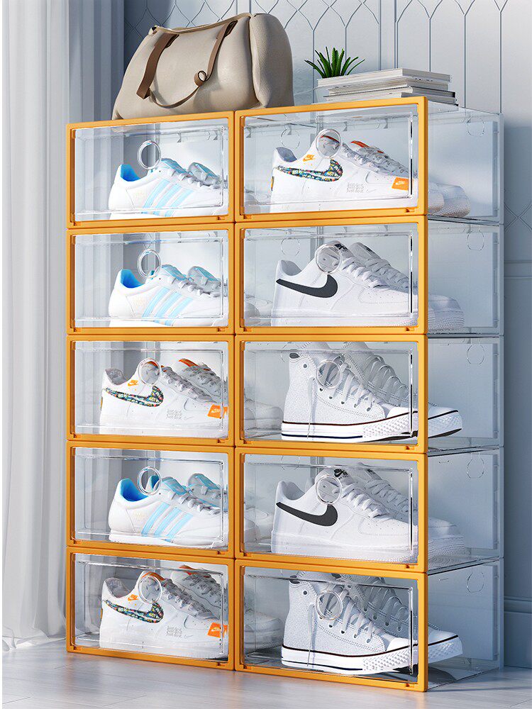 Прозрачная коробка для хранения обувной коробки с переворотом для хранения.