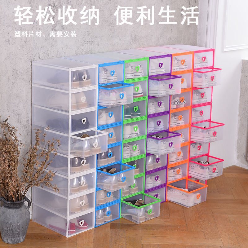 Упаковка из полипропиленовых обувных коробок с 2-6 выдвижными ящиками, утолщенных, прозрачных и штабелируемых обувных коробок, бытовых коробок для хранения различных вещей.