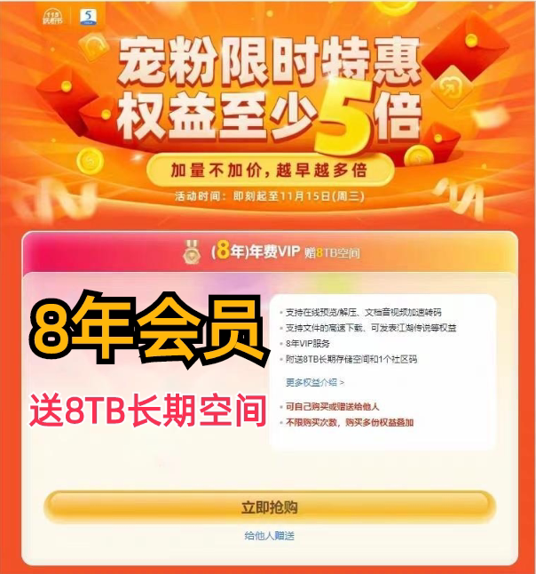 [Официальная прямая трасса] 8 лет 115 Годовой онлайн -диск VIP доступен за один ход на 8 лет Супер членство увеличивает 8T пространства