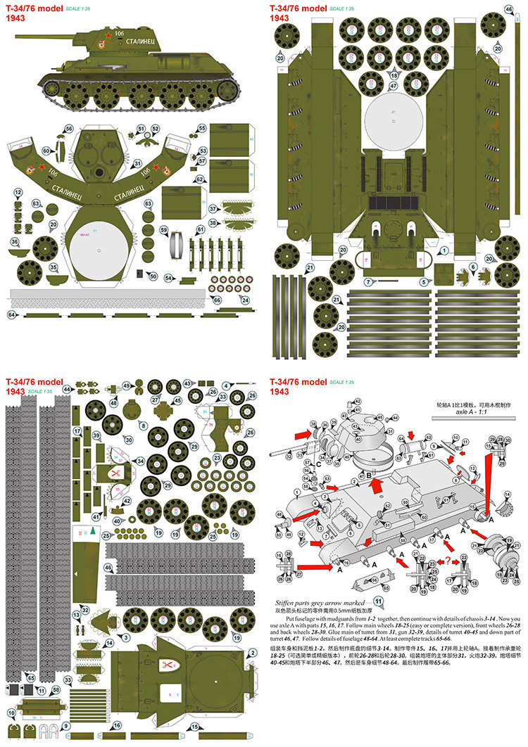 Советский T-34-76-1943 Средний бак-модель 1:35 Военные боевые искусства Стерео бумага ручная работа ручной работы ручной работы ручной работы