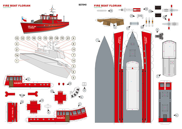 Чешский флоринский пожарный корабль бумага модель 1:87 Модель начинающих лодок Стерео бумажная искусство ручной работы ручной работы DIY