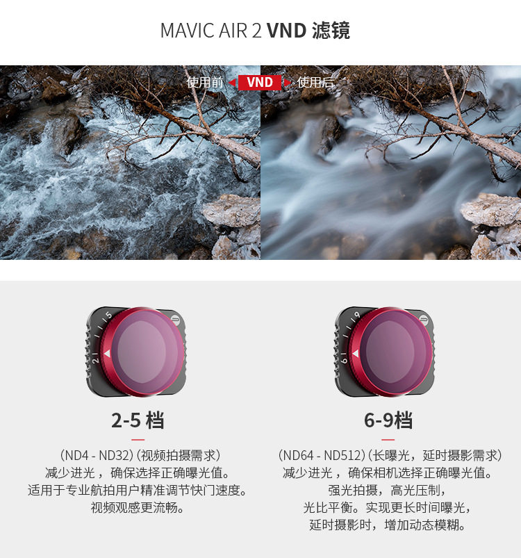 Подходит для аксессуаров DJI DJI Royal Mavic Air 2 Accessories VND Фильтр может регулировать снижение оптического света 2-5/6-9