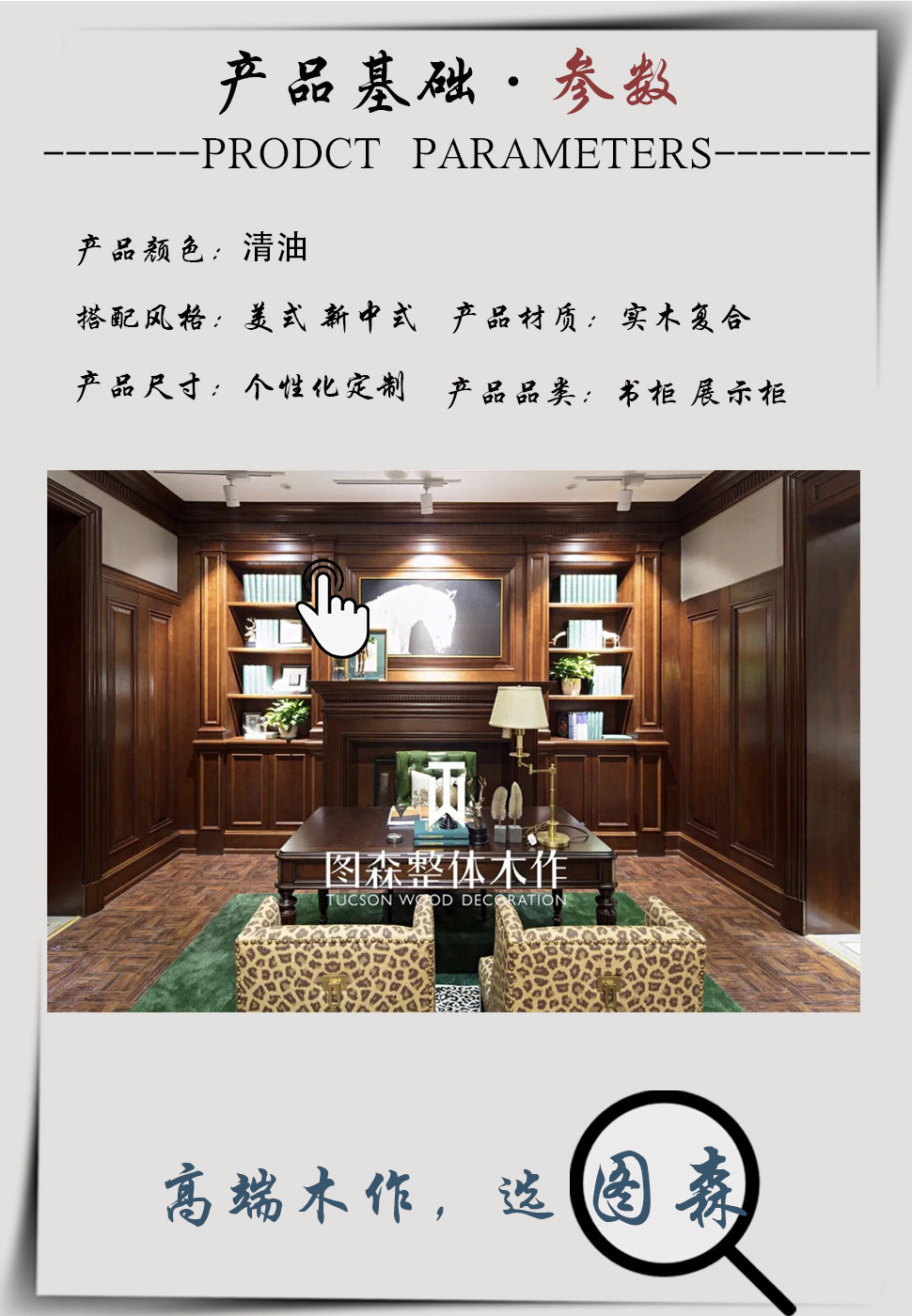 Tucson Tucson's High -End Общая деревянная индивидуальная книжная шкаф T -wwood Home (Dephit)