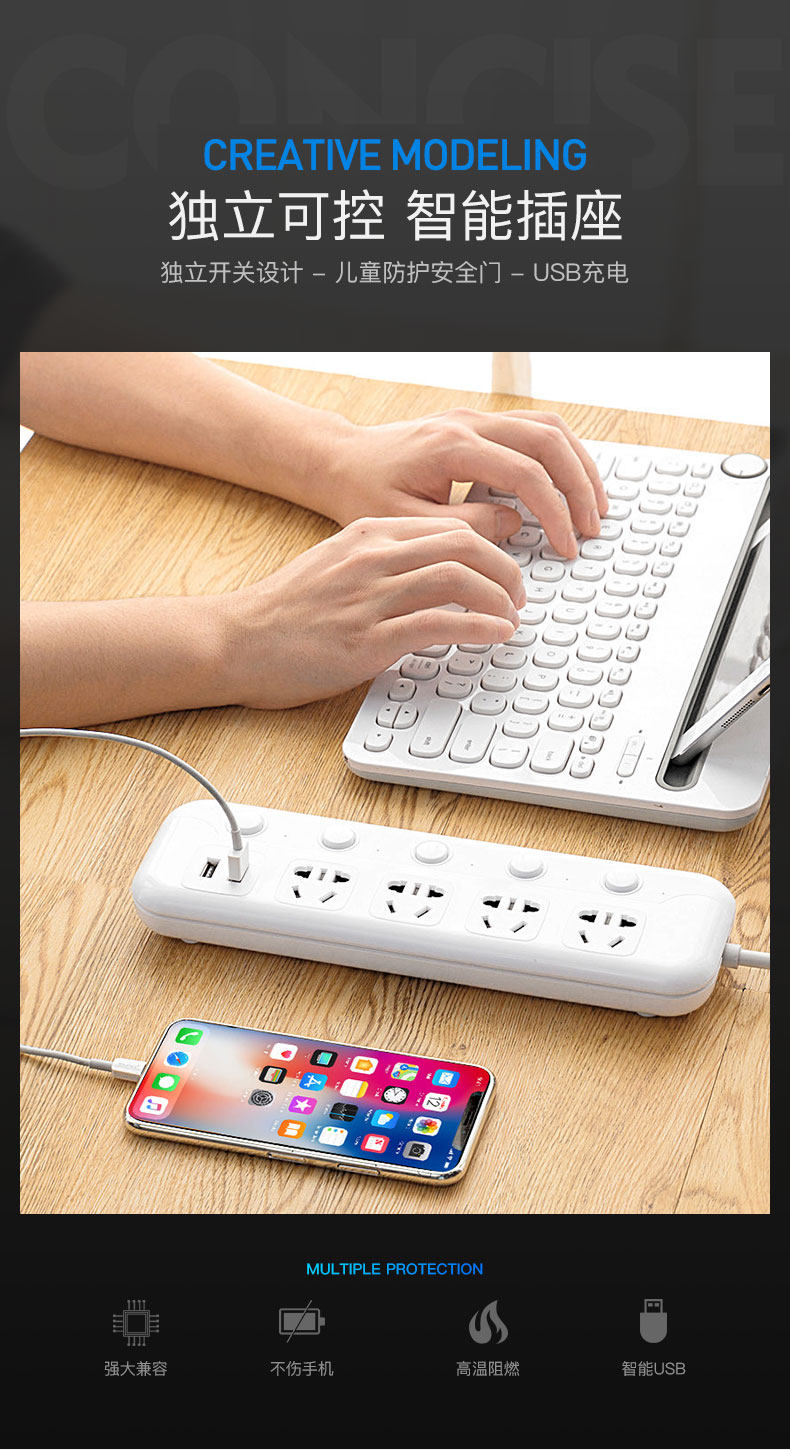 Домохозяйство -Дополнительная панель Smart Socket Panel Porous Multi -функциональная полоса USB зарядка