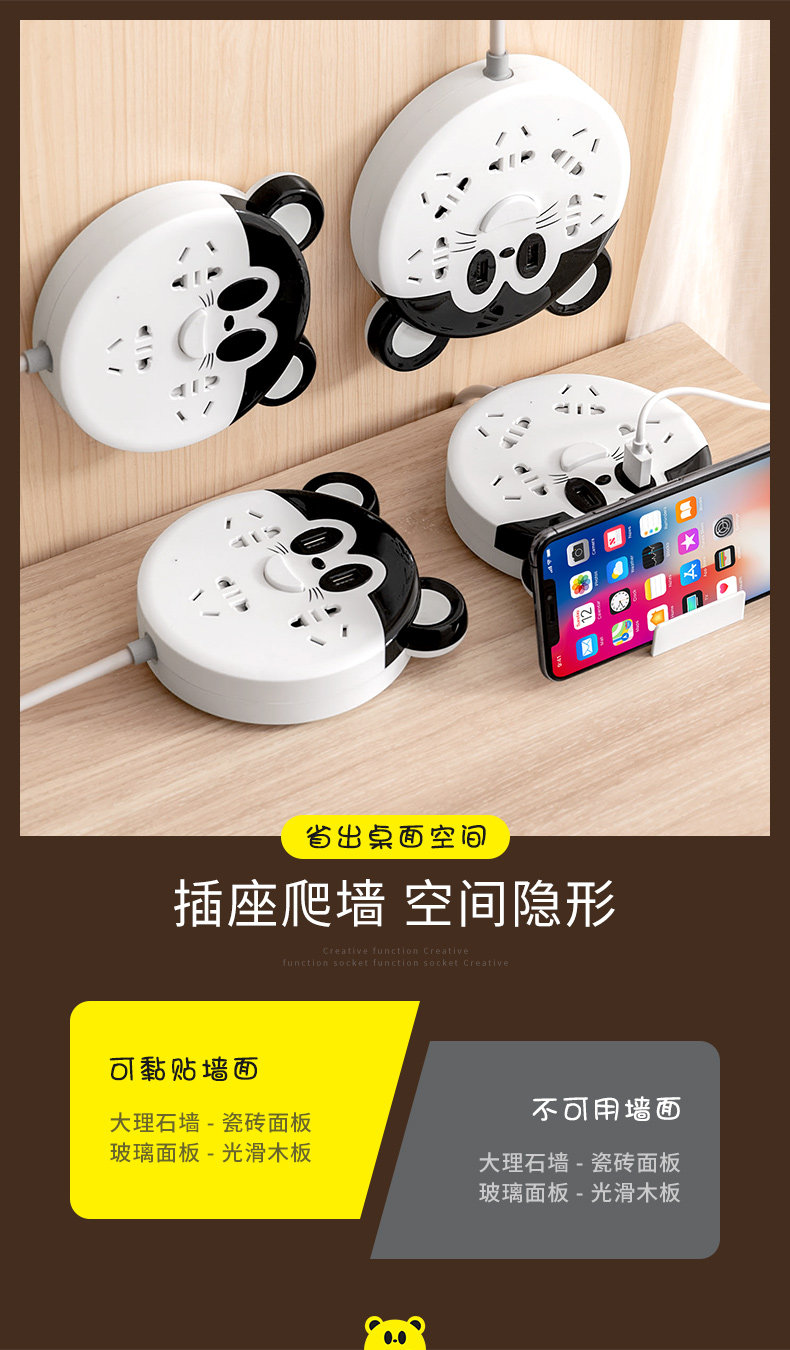 Домохозяйство Can Can Mobile Clatibing Wall Smart Descep Панель Пористая мульти -функция с USB -зарядкой строки линия удлинителя