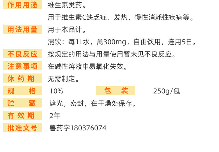 Витамин С для порошкового порта порошкового порта, свиньи, свиньи, курицы, утки, утки, птицы, должно интерпретировать нагревающий иммунный иммунный порошок VC