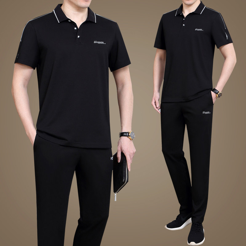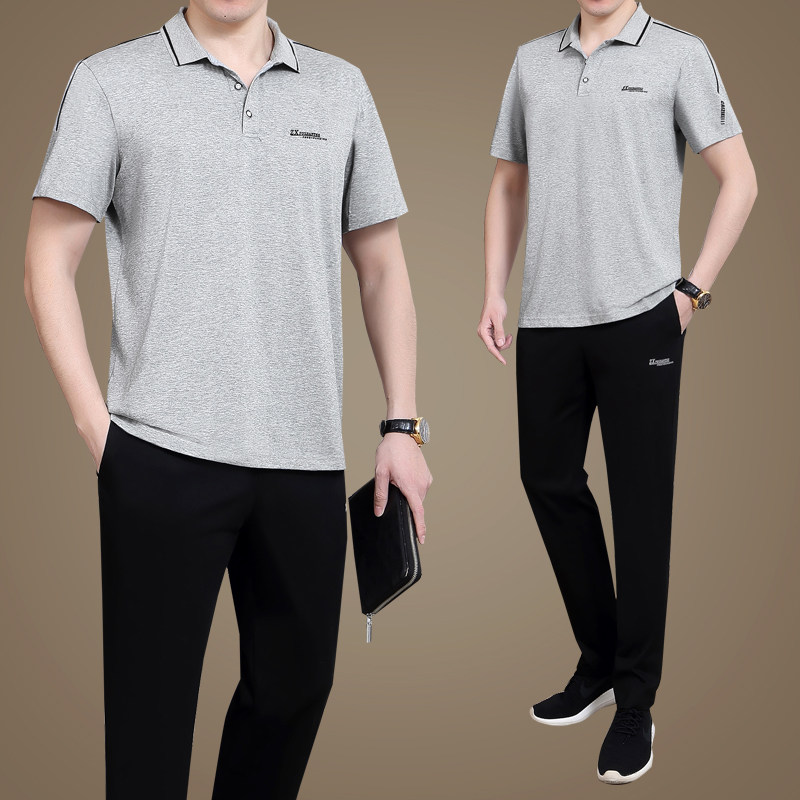 Высококлассный летний спортивный костюм для пожилых людей, спортивные штаны, для среднего возраста, большой размер, короткий рукав