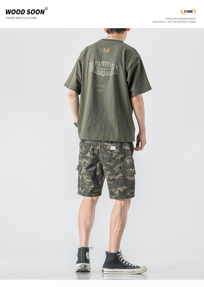 Трендовый комплект, камуфляжная футболка с буквами, шорты, коллекция 2022