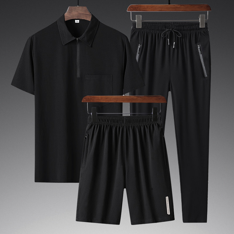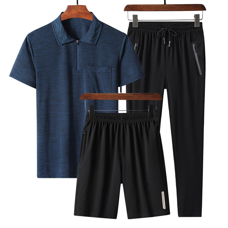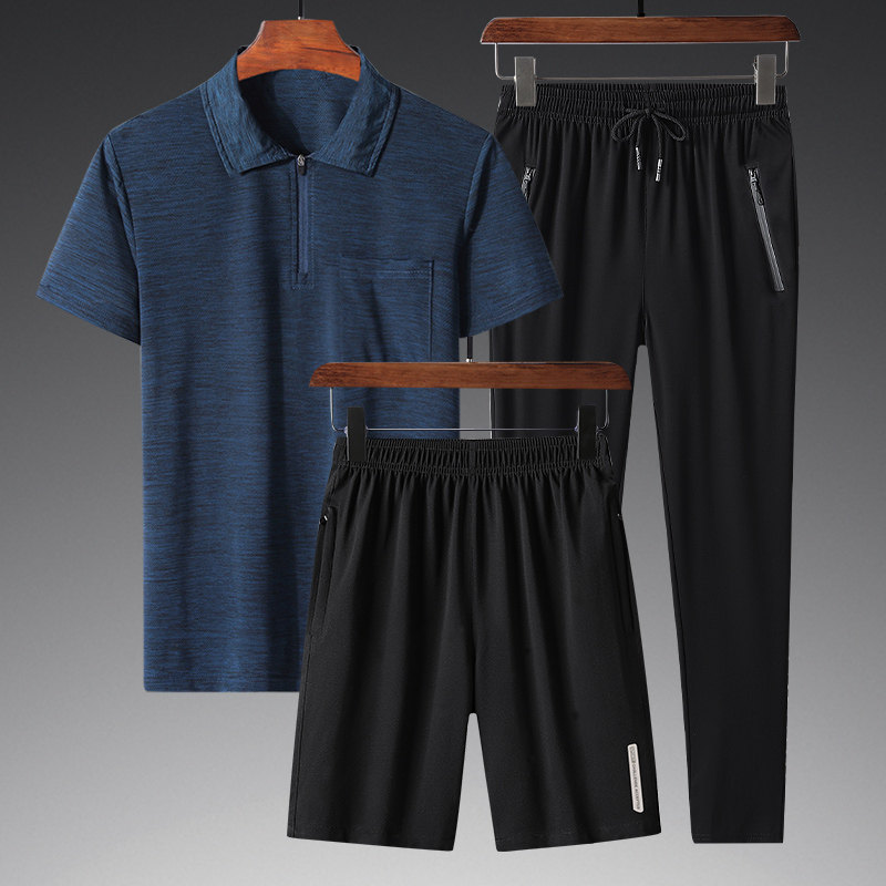 Летняя футболка polo, трендовый комплект для спортзала, для мужчины среднего возраста, короткий рукав, коллекция 2021, оверсайз, для бега, 3 предмета