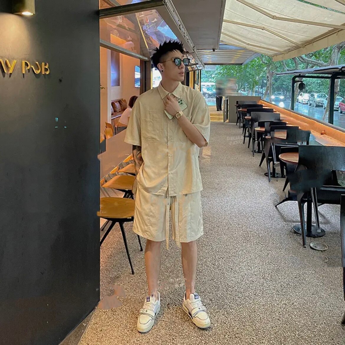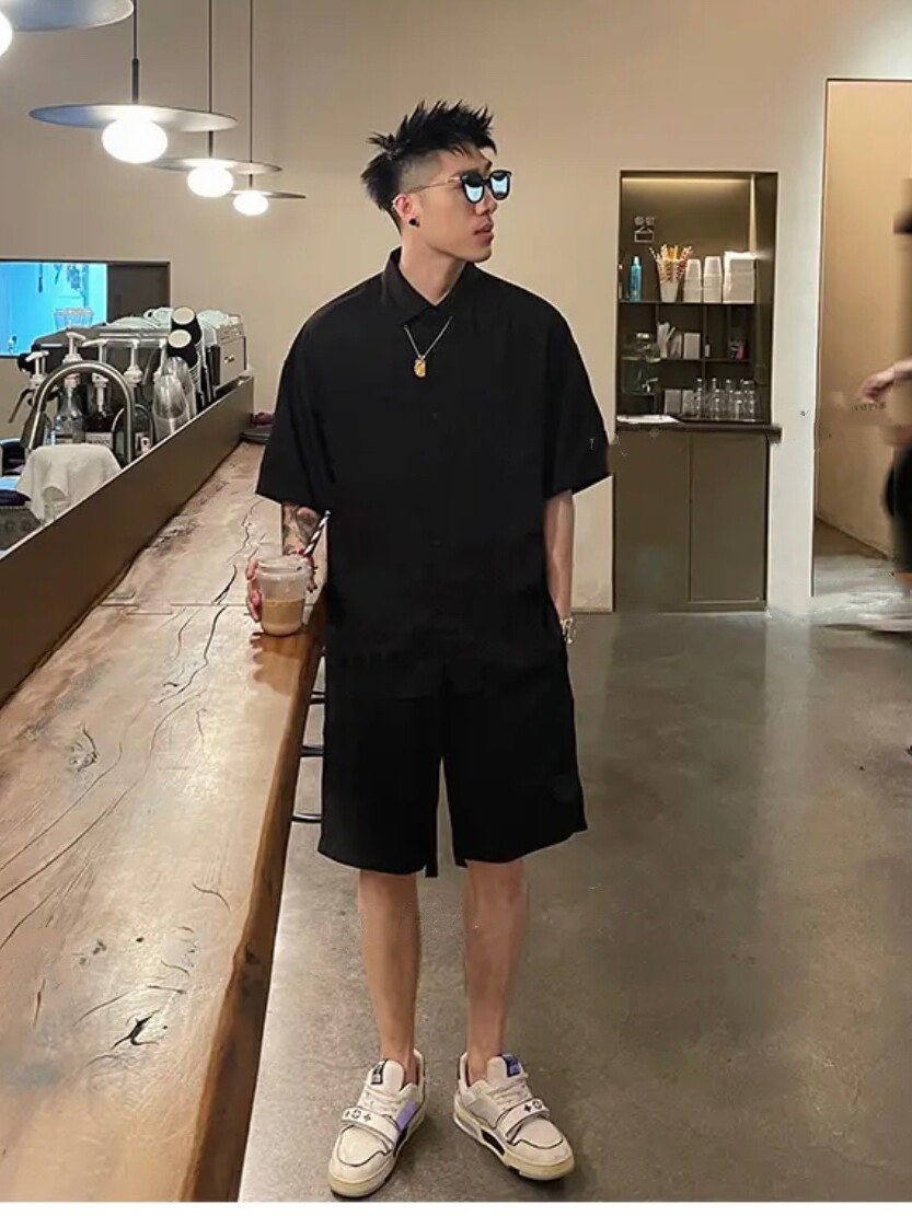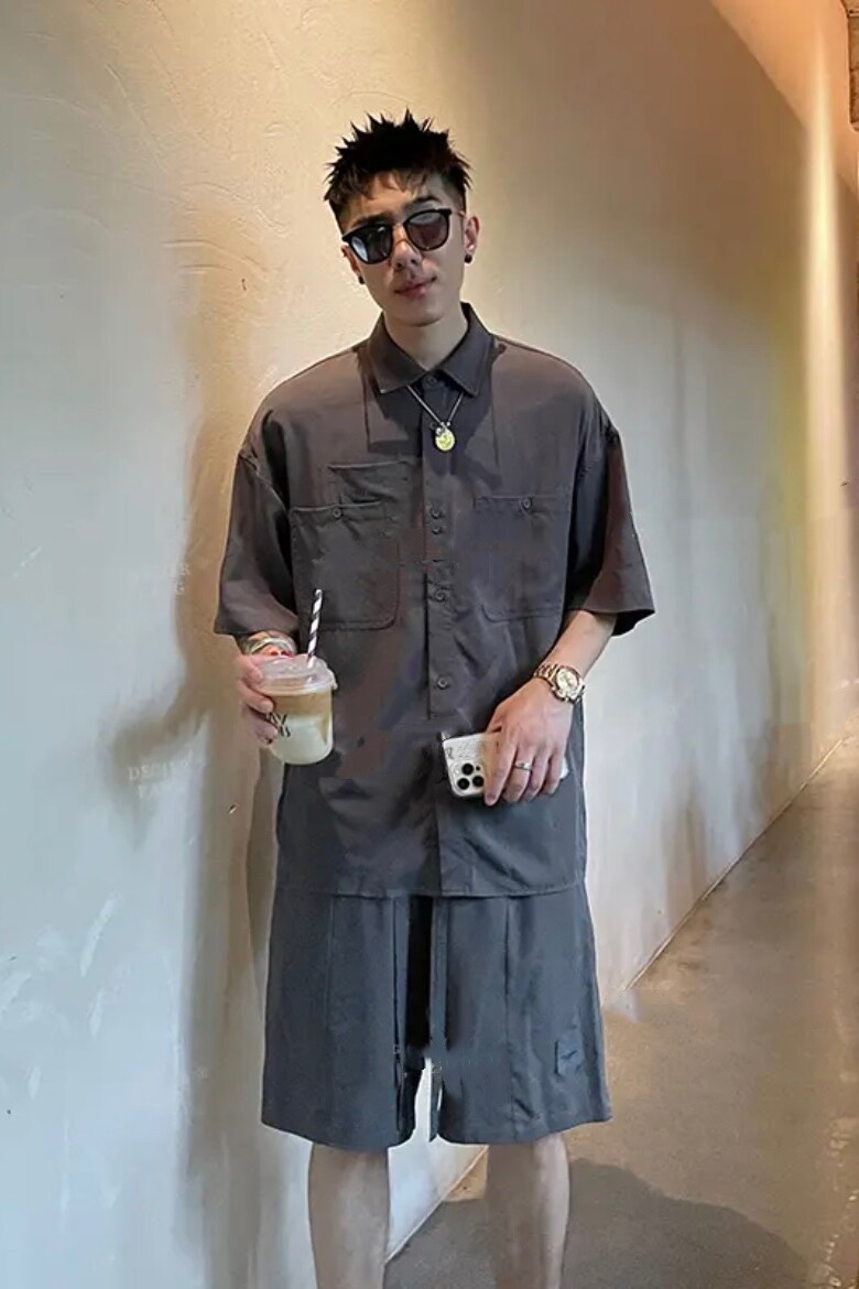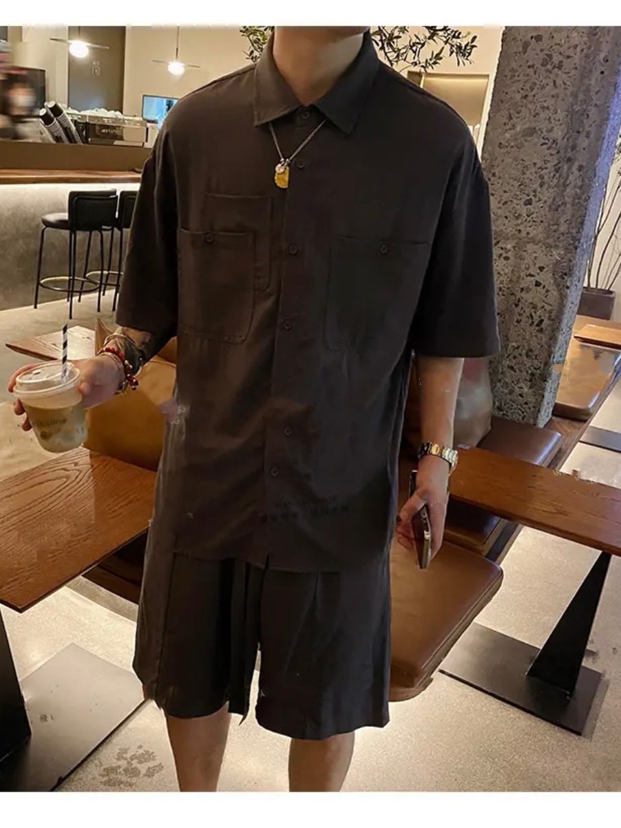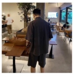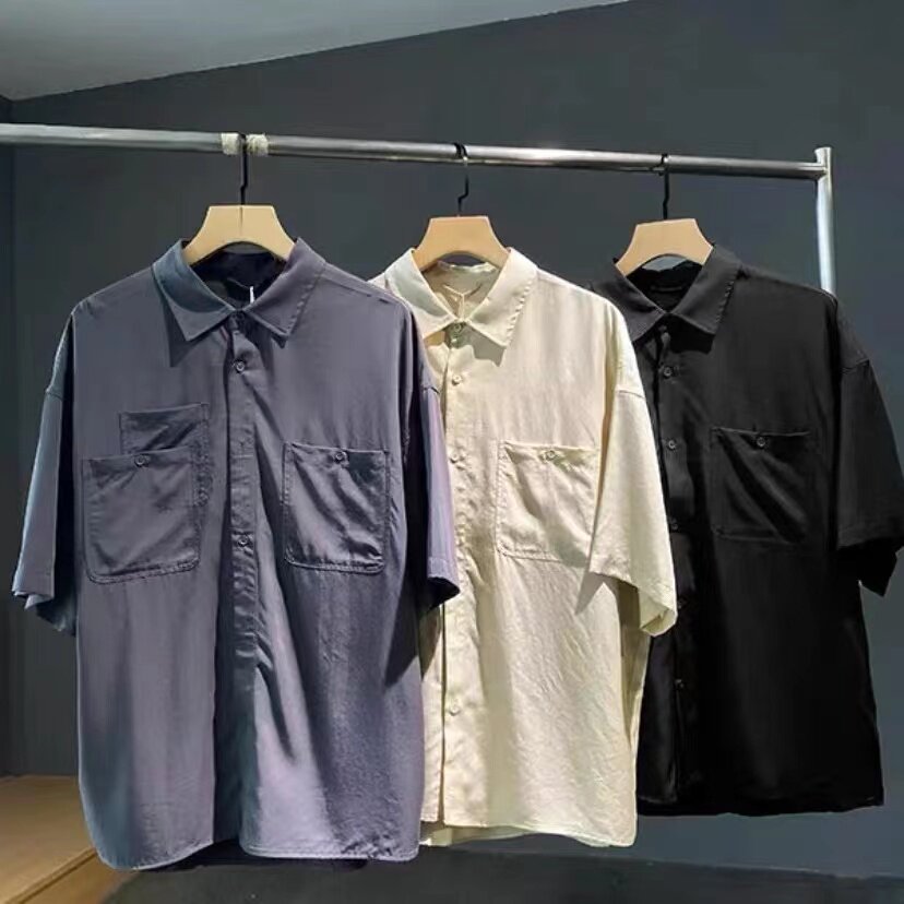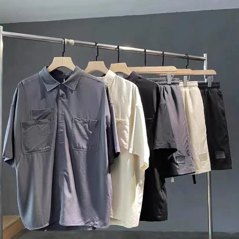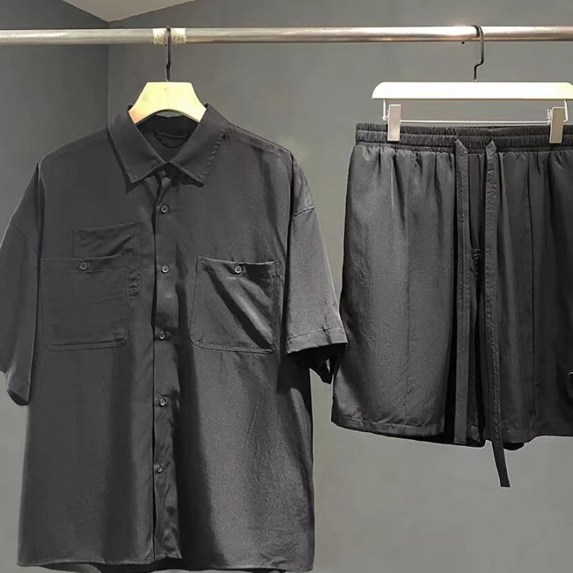 Летняя японская ретро шелковая рубашка, комфортный комплект, мягкие тонкие шорты, штаны, оверсайз, короткий рукав