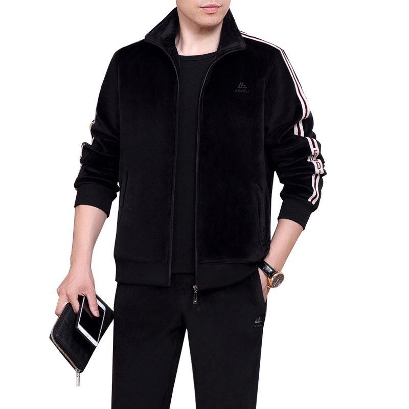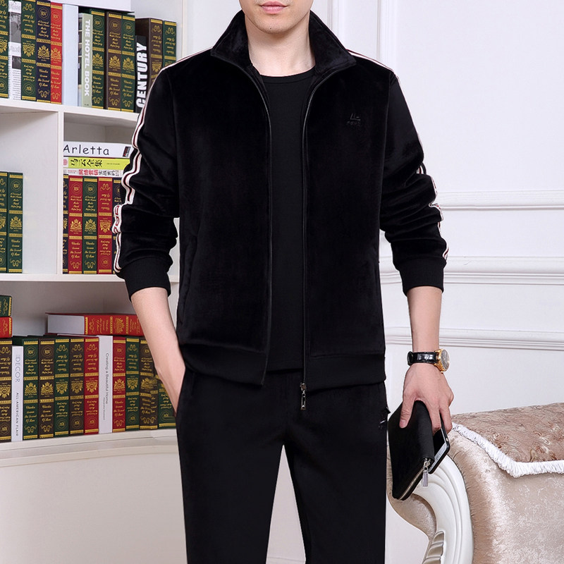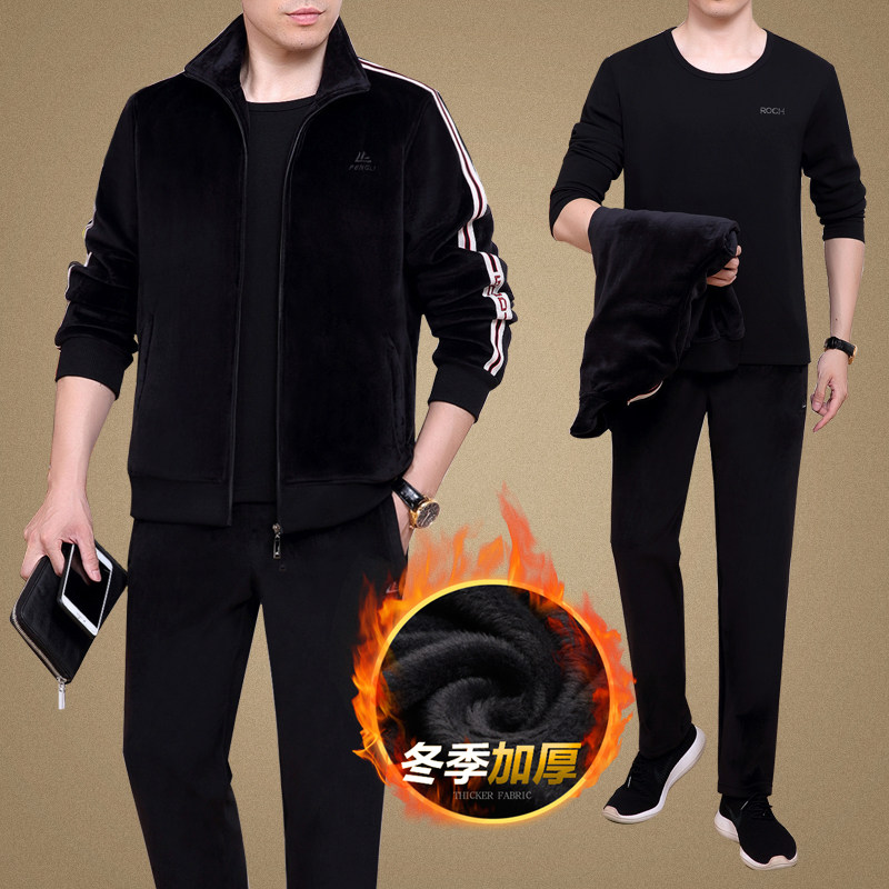 Пуховик, демисезонный бархатный спортивный костюм для отдыха, комплект для пожилых людей, увеличенная толщина, для среднего возраста, 3 предмета