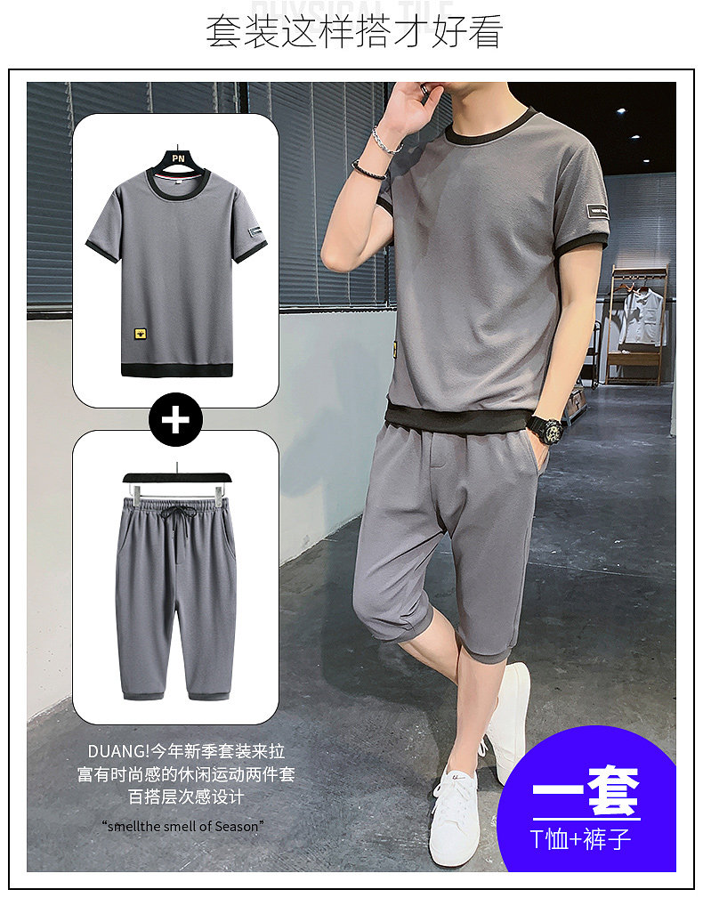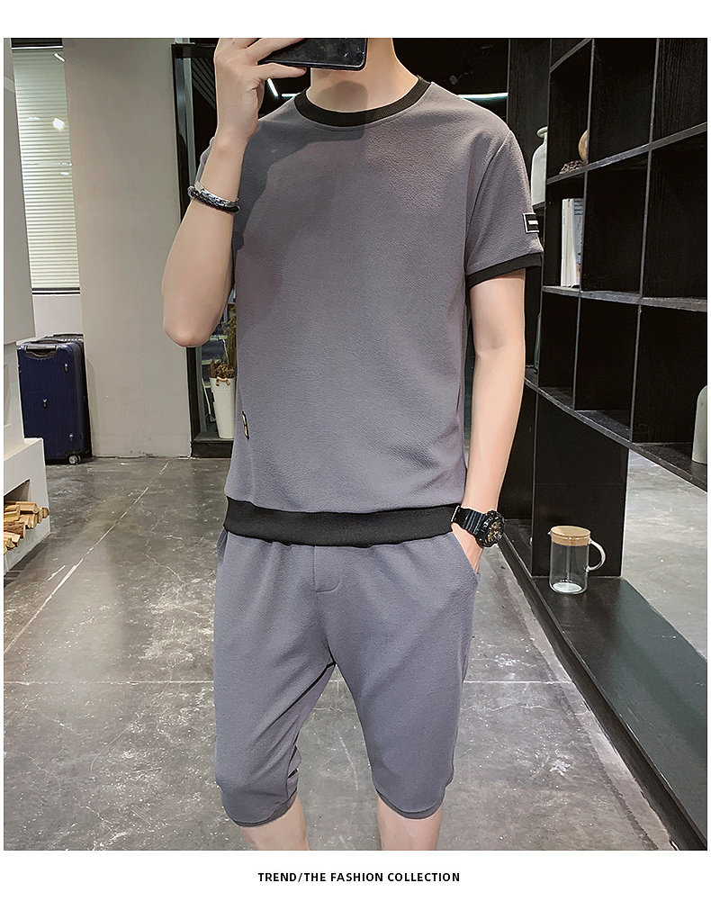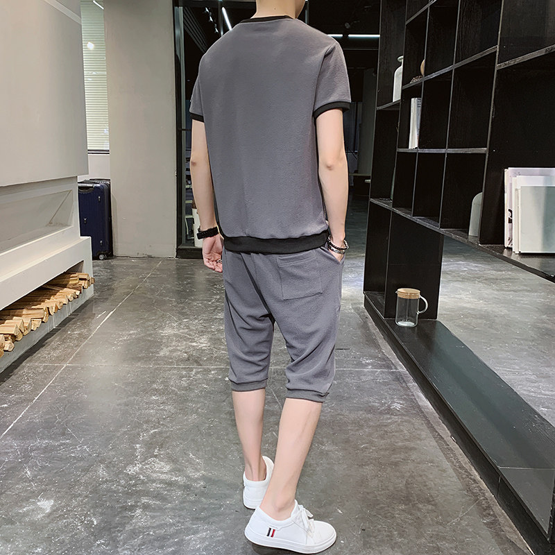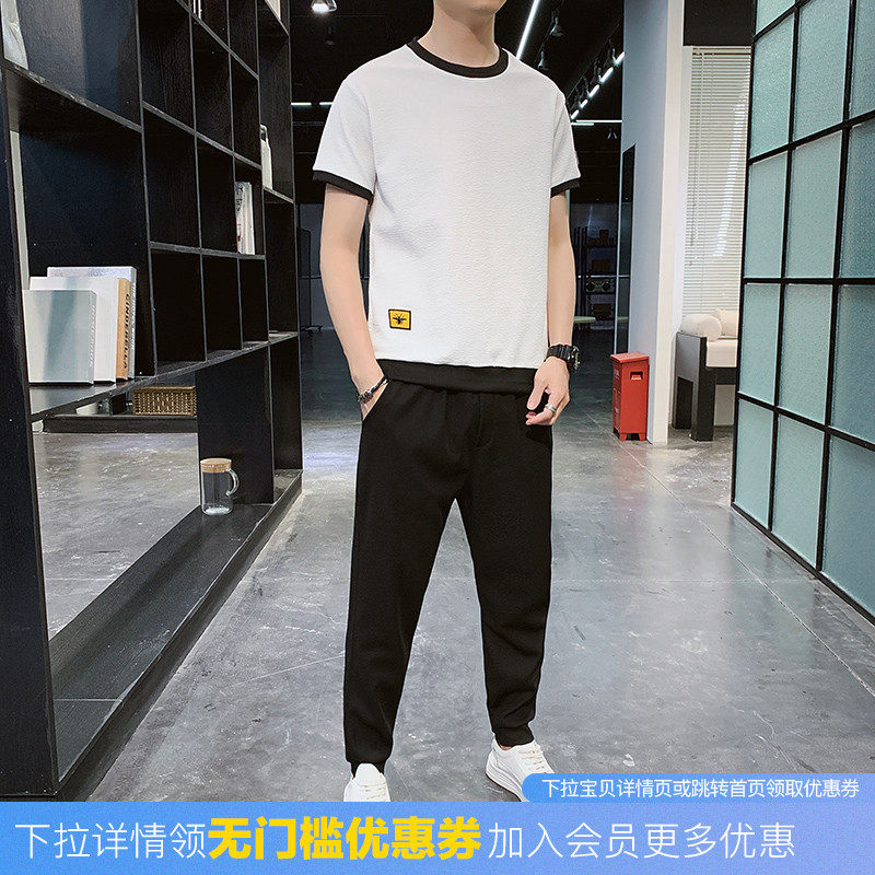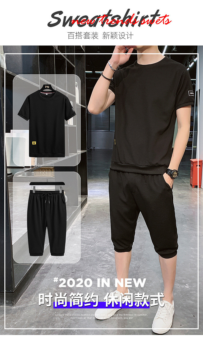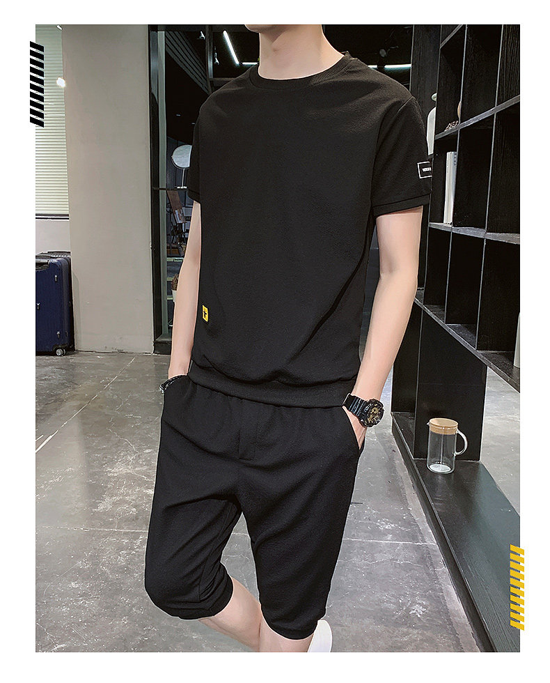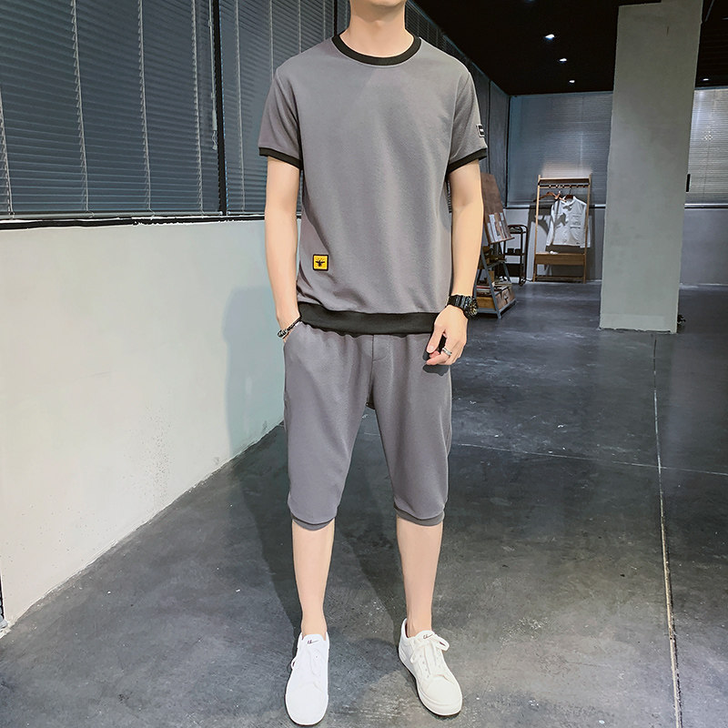 Мужской спортивный костюм, трендовые летние шелковые шорты, комплект для мальчиков, 2020, в корейском стиле, короткий рукав