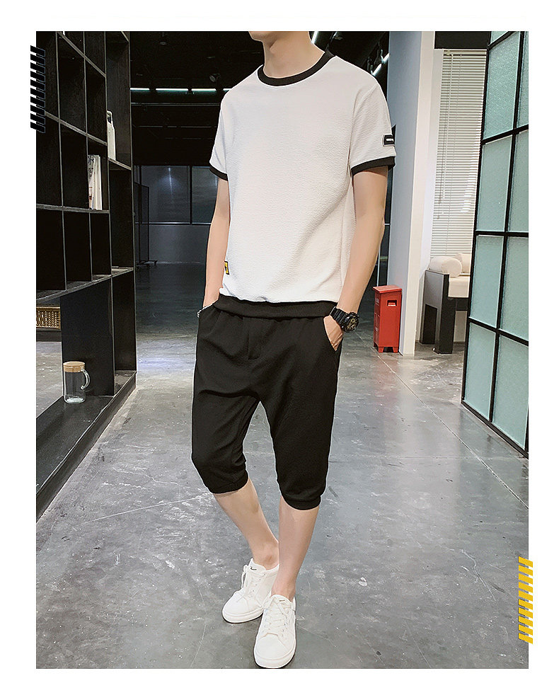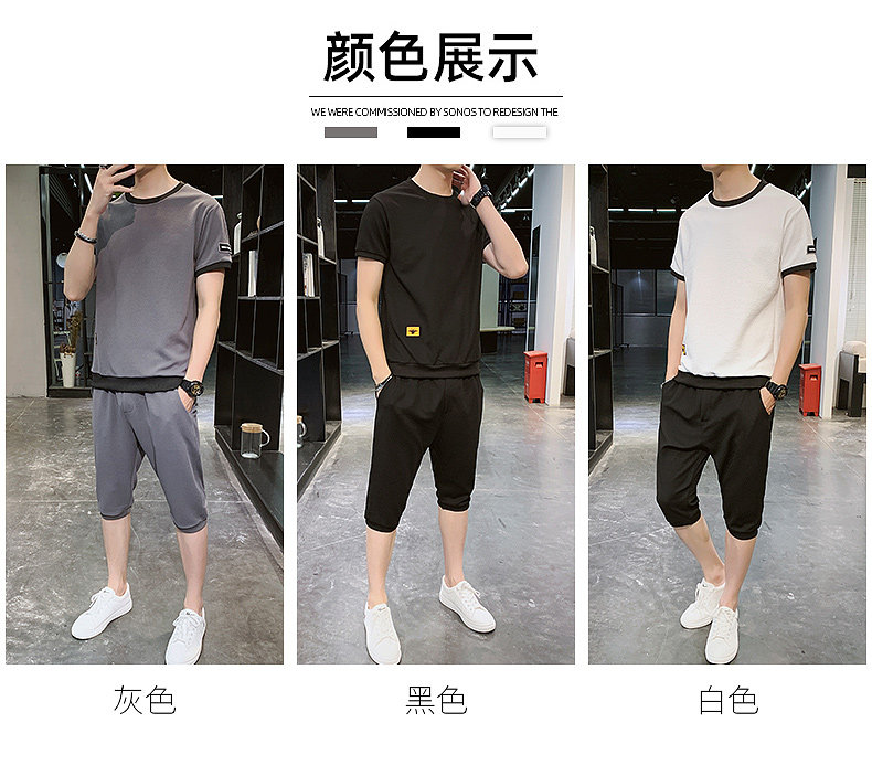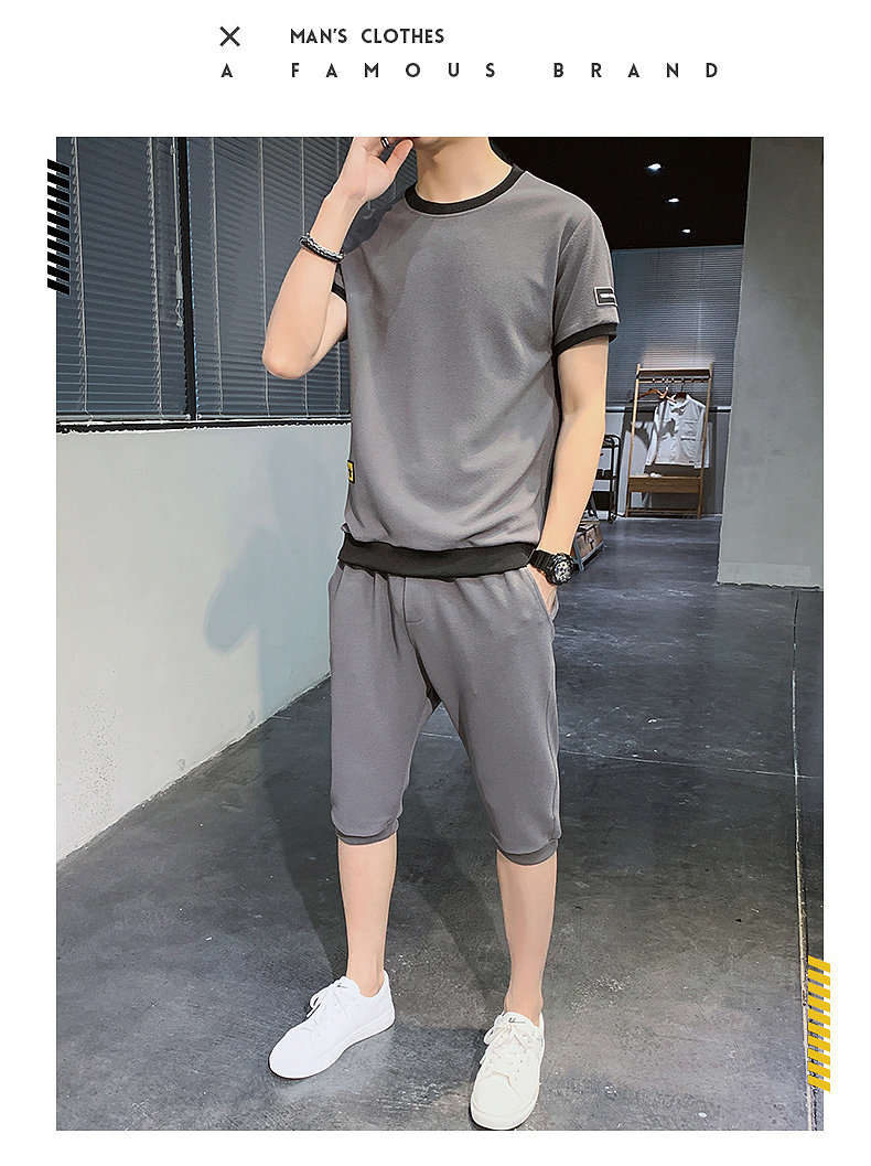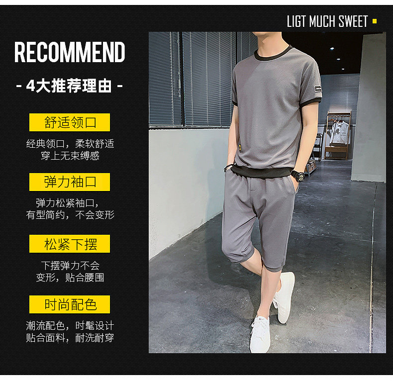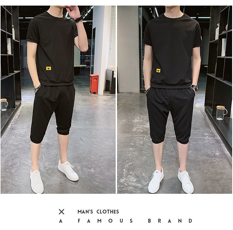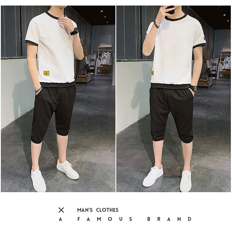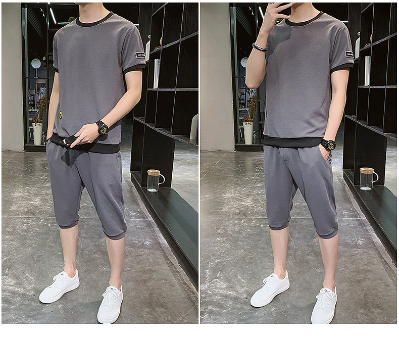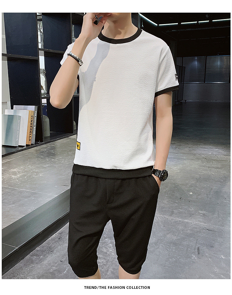 Мужской спортивный костюм, трендовые летние шелковые шорты, комплект для мальчиков, 2020, в корейском стиле, короткий рукав
