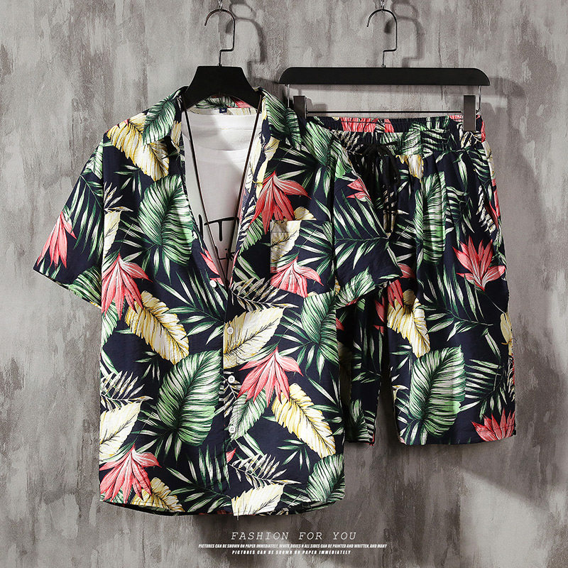 Пляжная рубашка, комплект, трендовые шорты в стиле хип-хоп, короткий рукав