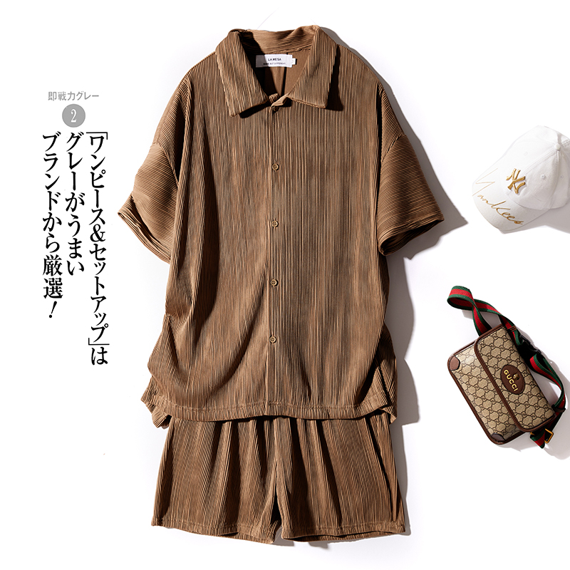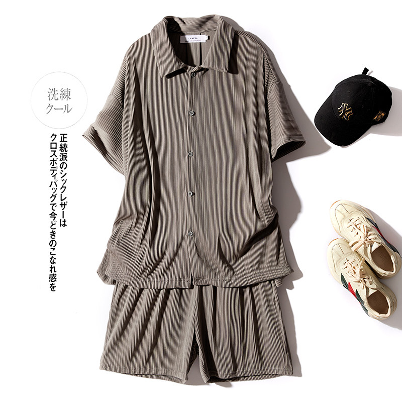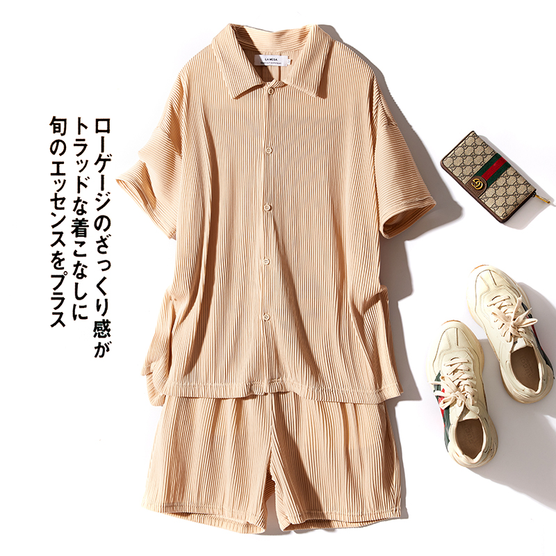 Рубашка, мужской летний японский комплект, шорты, штаны, свободный крой, короткий рукав