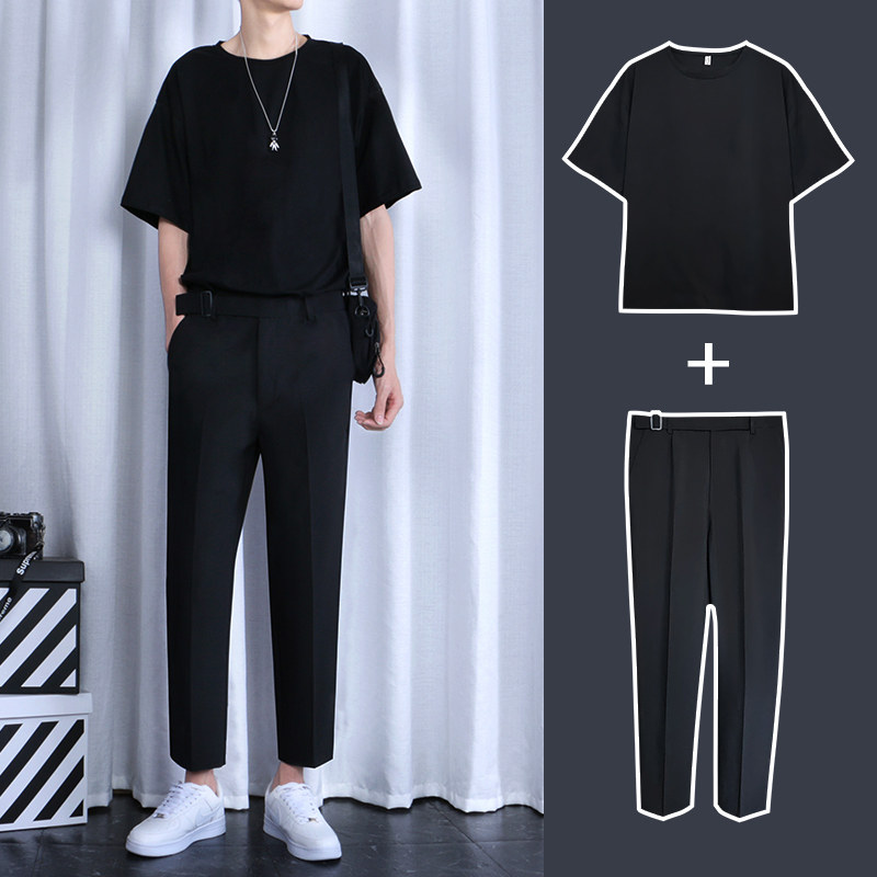 Мужской комплект для отдыха, летняя футболка, штаны, популярно в интернете