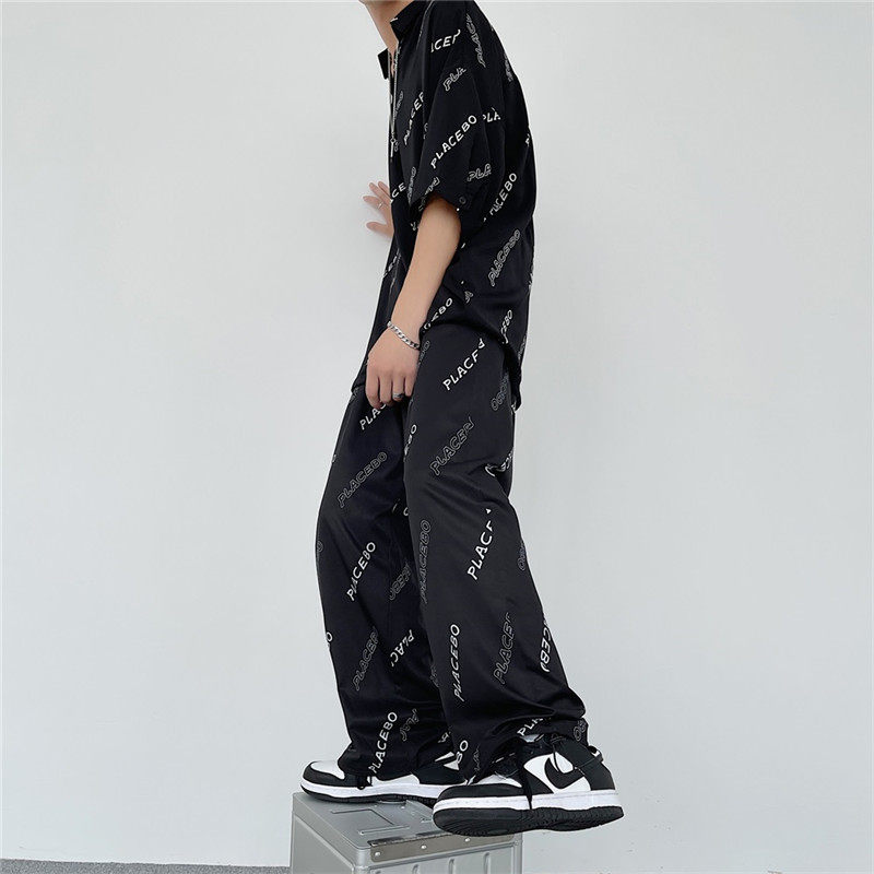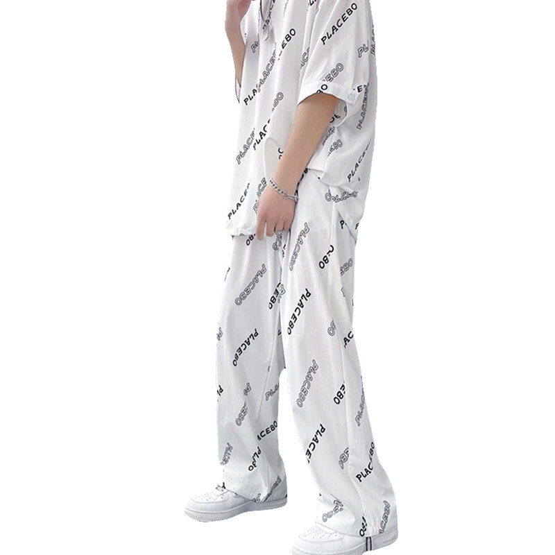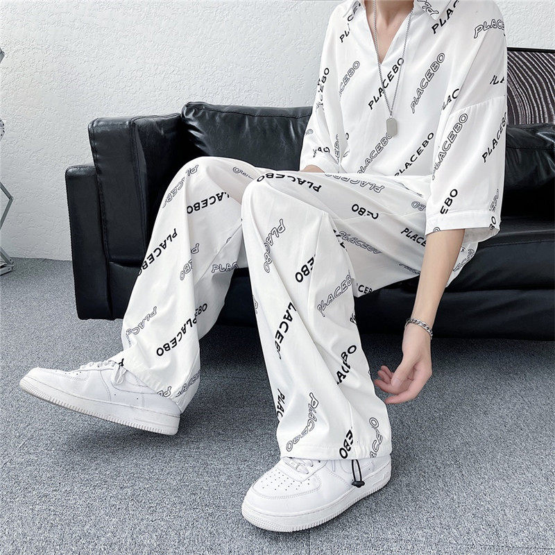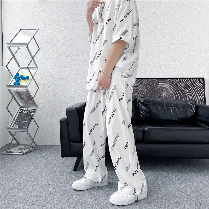 Мужской летний комплект, трендовые повседневные брюки, популярно в интернете, свободный крой, короткий рукав