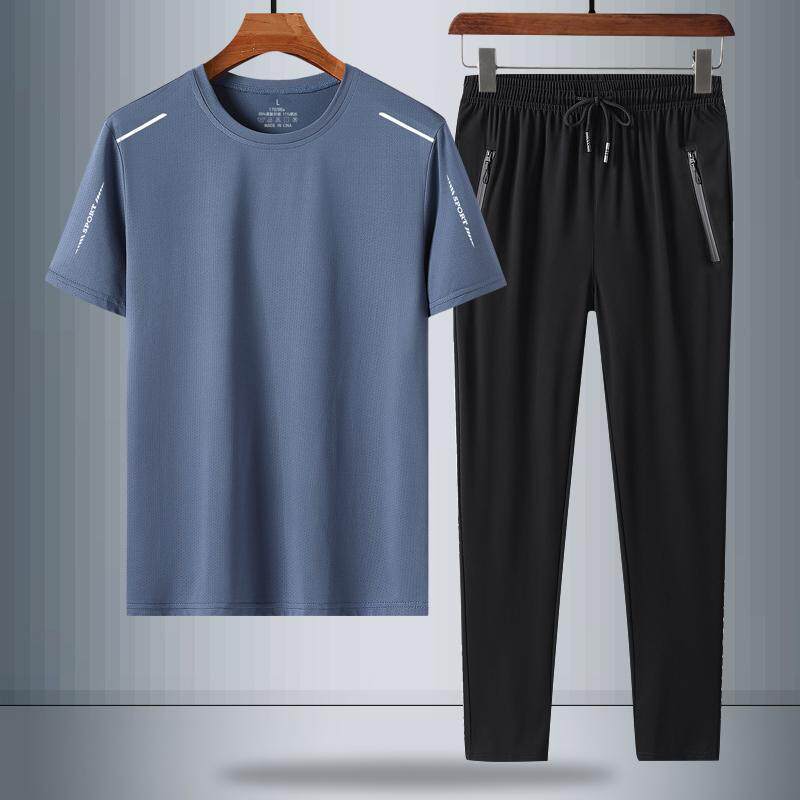 Шелковая летняя одежда, комплект, футболка с коротким рукавом, штаны для пожилых людей, для среднего возраста