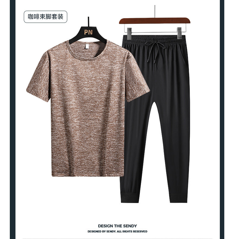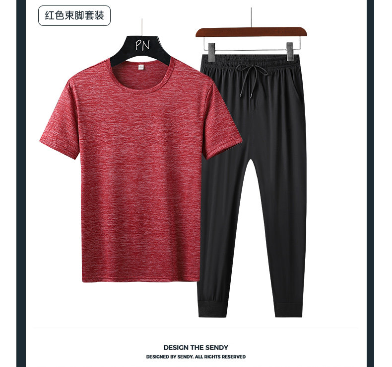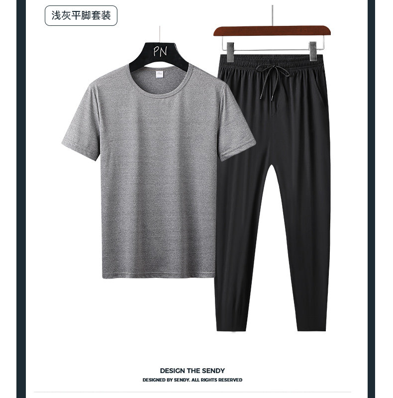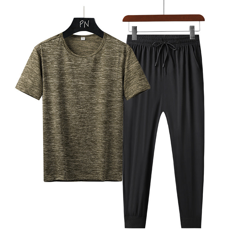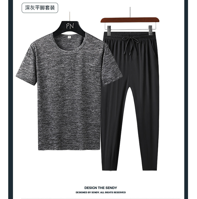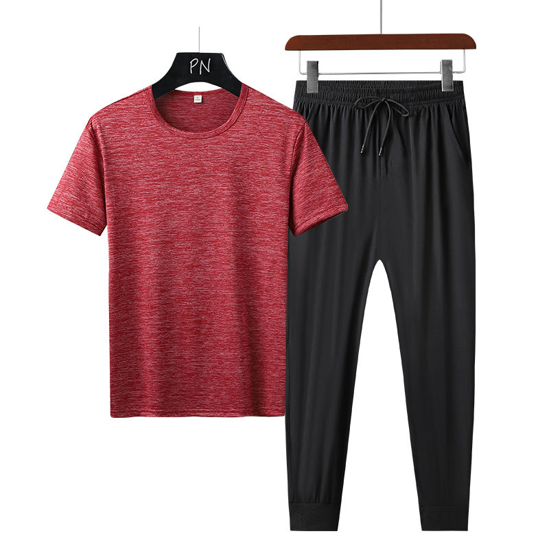 Летний спортивный костюм, тонкая быстросохнущая футболка с коротким рукавом, штаны, для бега