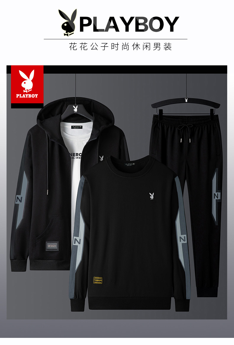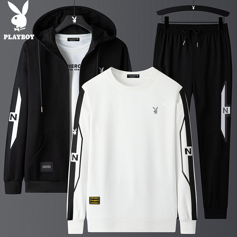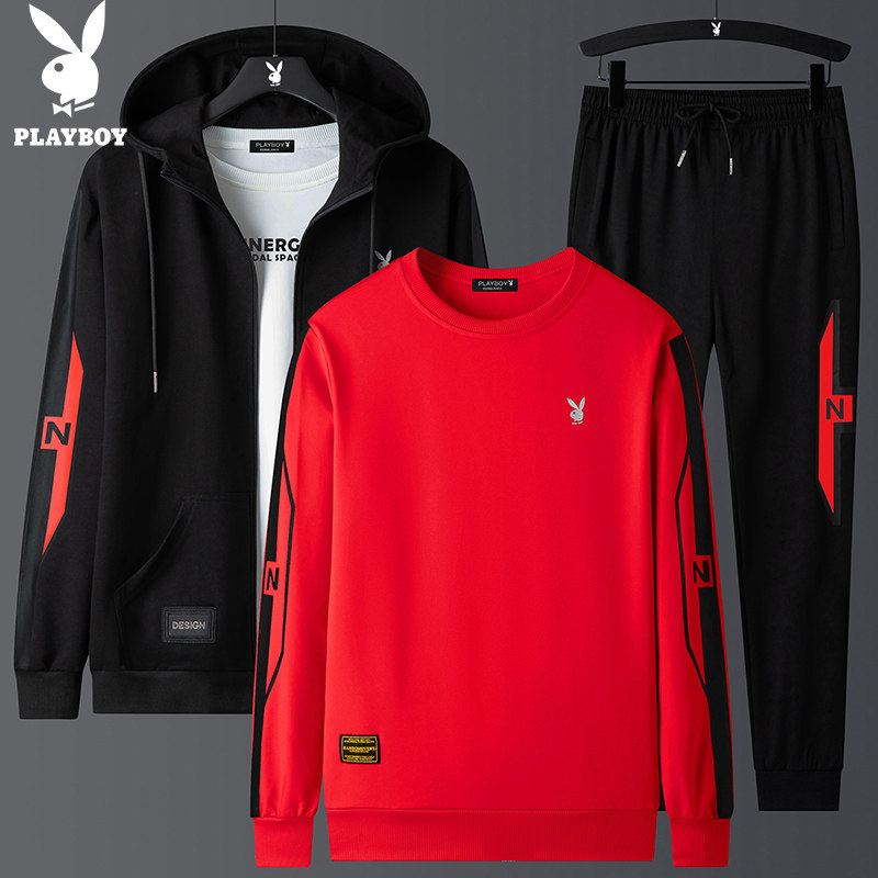 Playboy, мужской комплект для отдыха, осенняя толстовка с капюшоном, спортивный костюм, 3 предмета