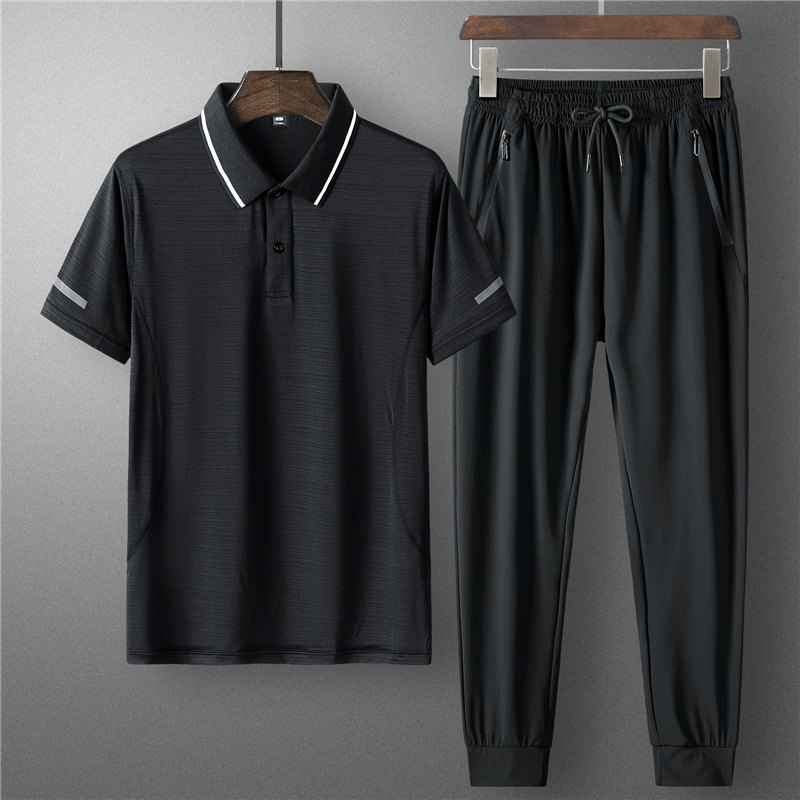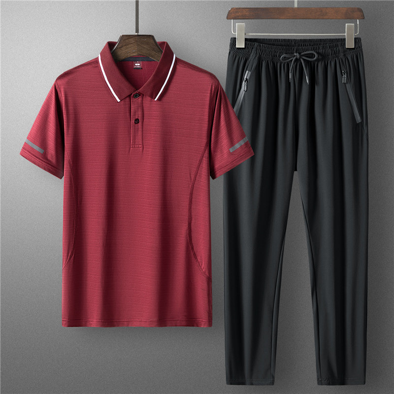 Красная шелковая футболка polo, штаны, мужской летний комплект, форма для отдыха, спортивный костюм
