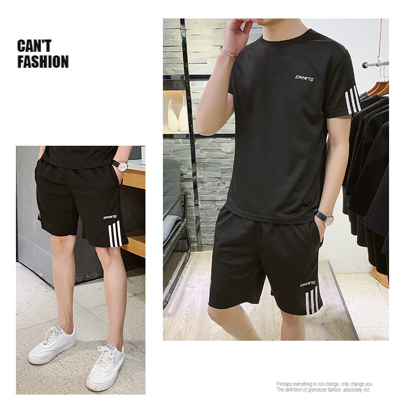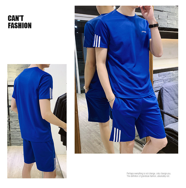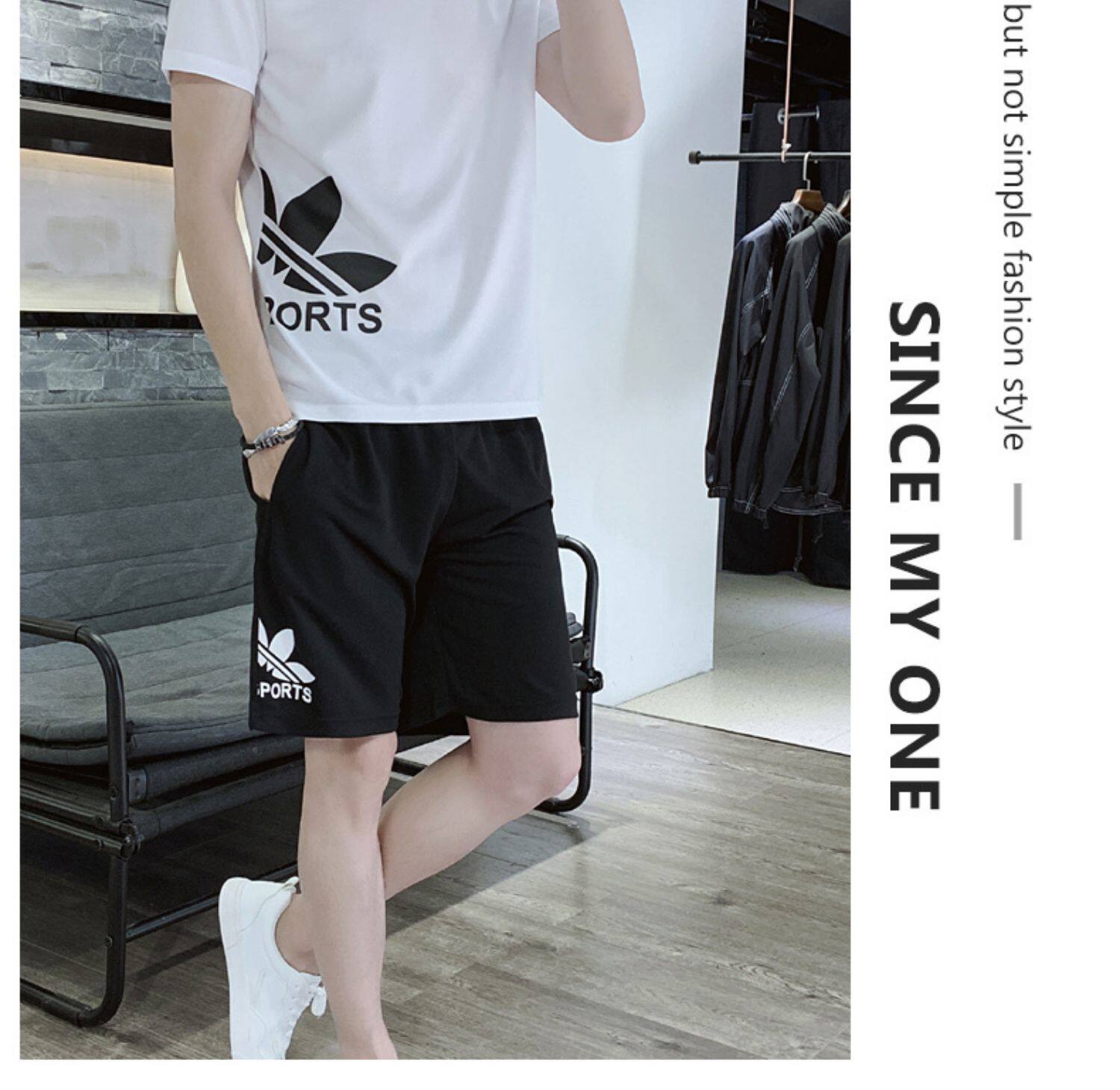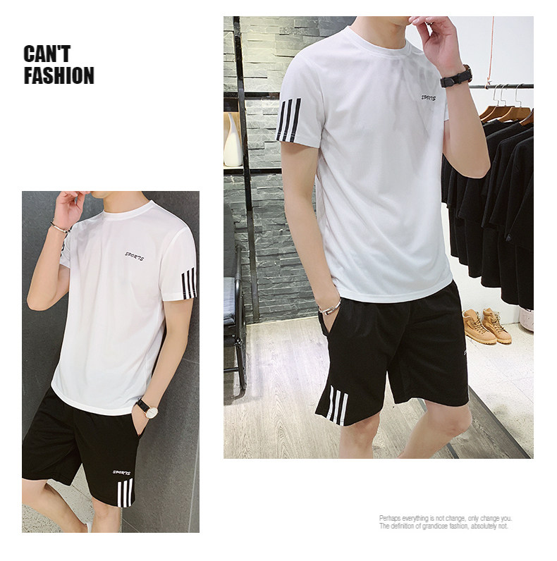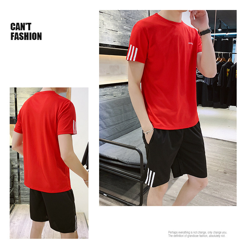 Мужской летний шелковый быстросохнущий спортивный костюм, трендовые тонкие шорты, футболка с коротким рукавом, простой и элегантный дизайн