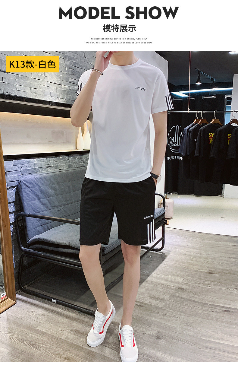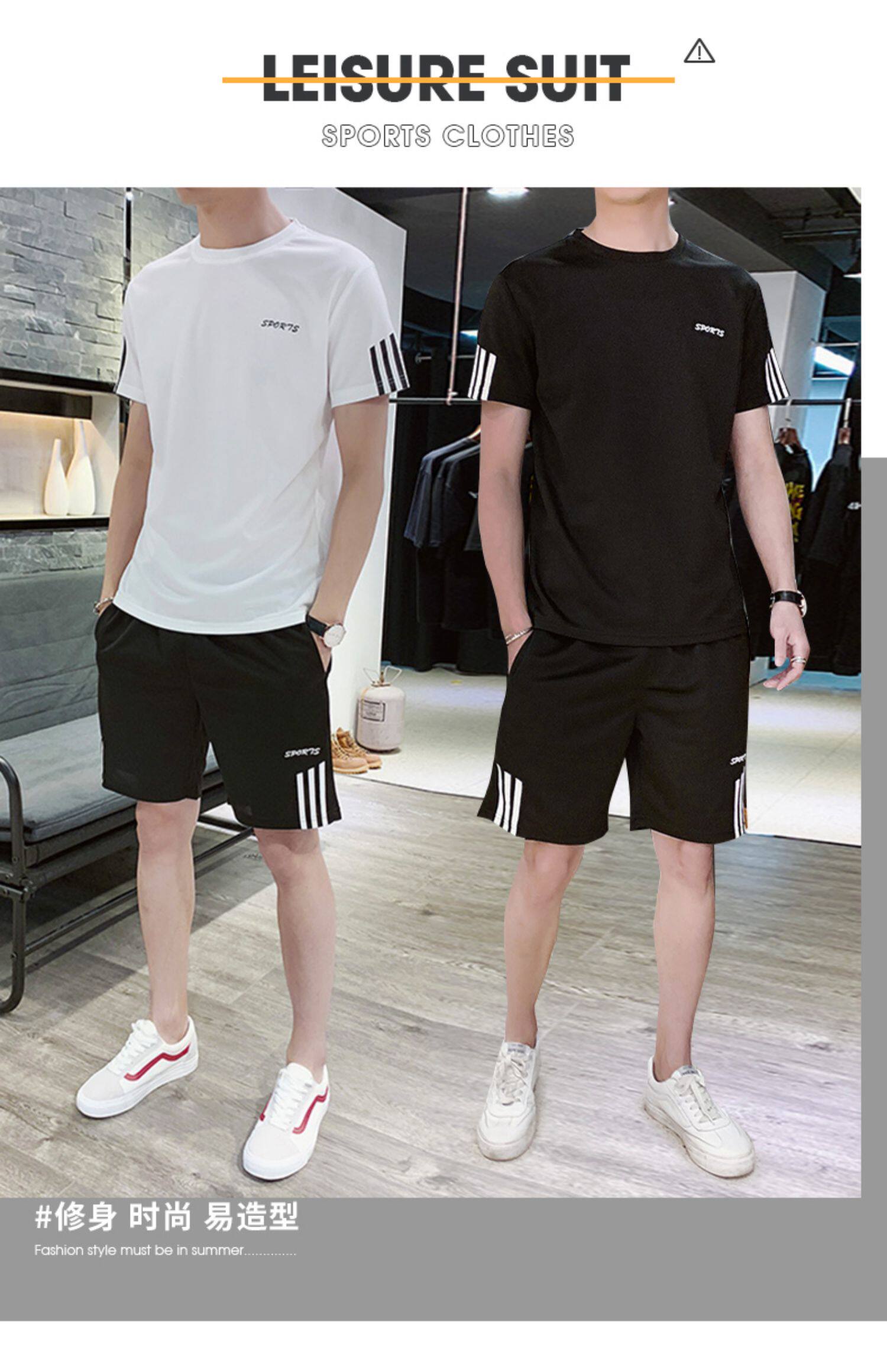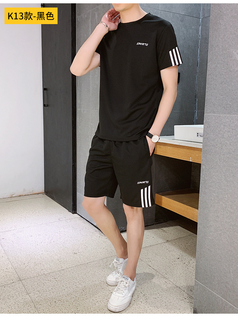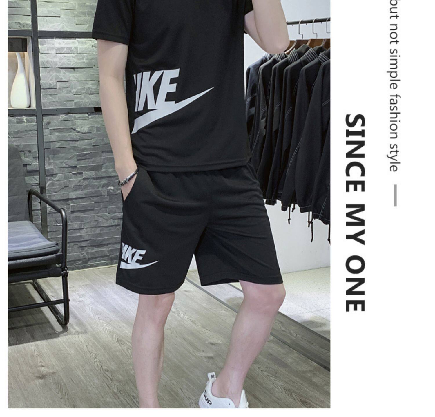 Мужской летний шелковый быстросохнущий спортивный костюм, трендовые тонкие шорты, футболка с коротким рукавом, простой и элегантный дизайн