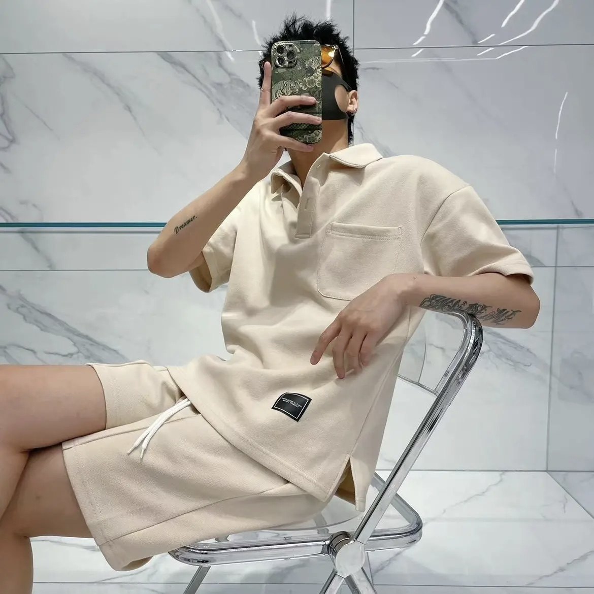 Летняя трендовая футболка polo, комплект, в корейском стиле, короткий рукав