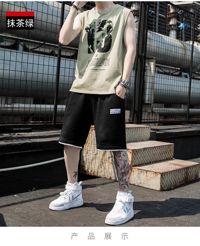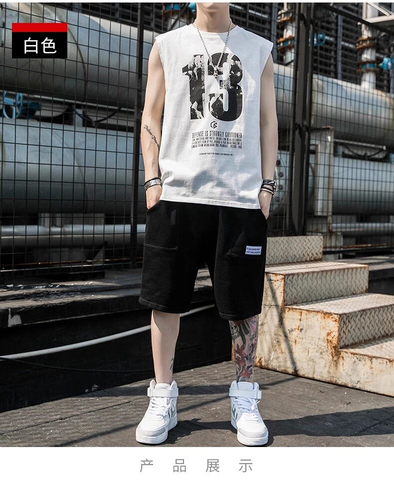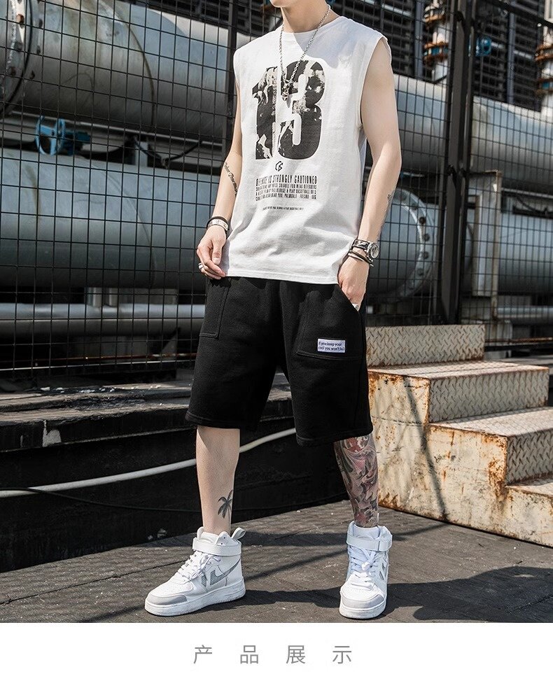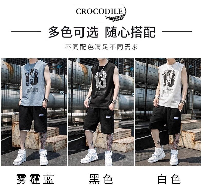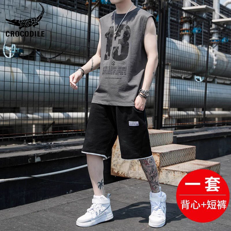 Летний жилет, мужской спортивный костюм, футболка без рукавов, шорты, штаны, крокодил, свободный крой