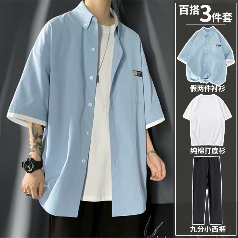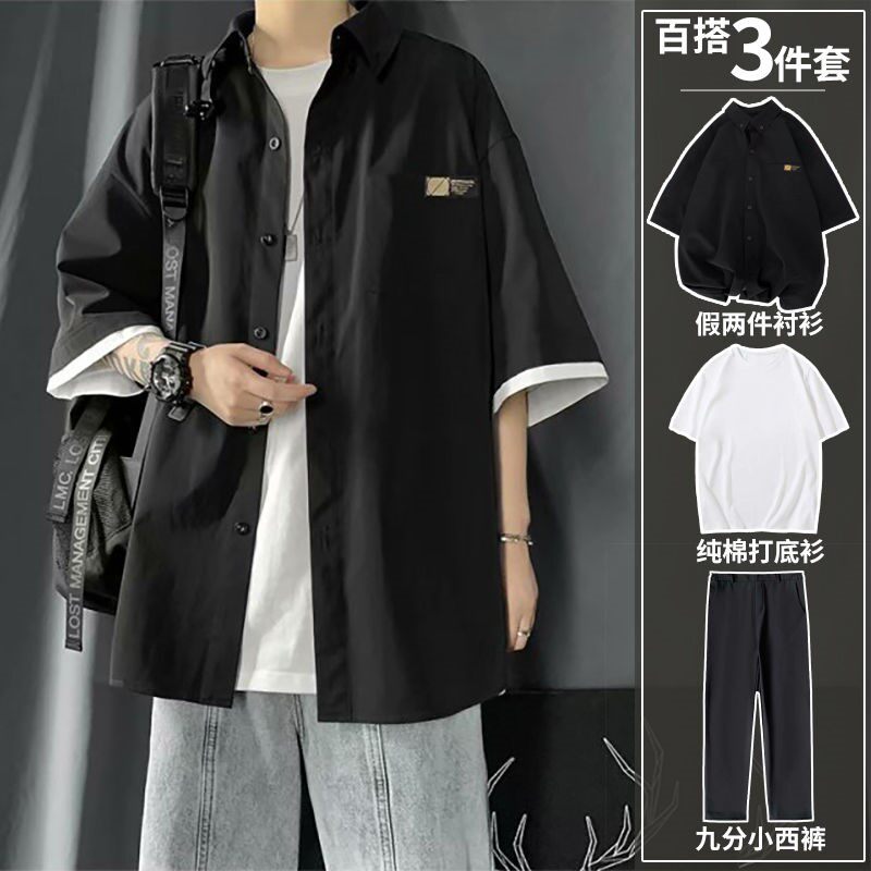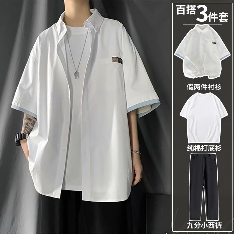 Комплект, мужская рубашка, спортивный костюм, 3 предмета, оверсайз