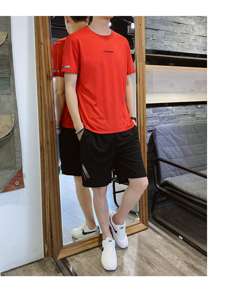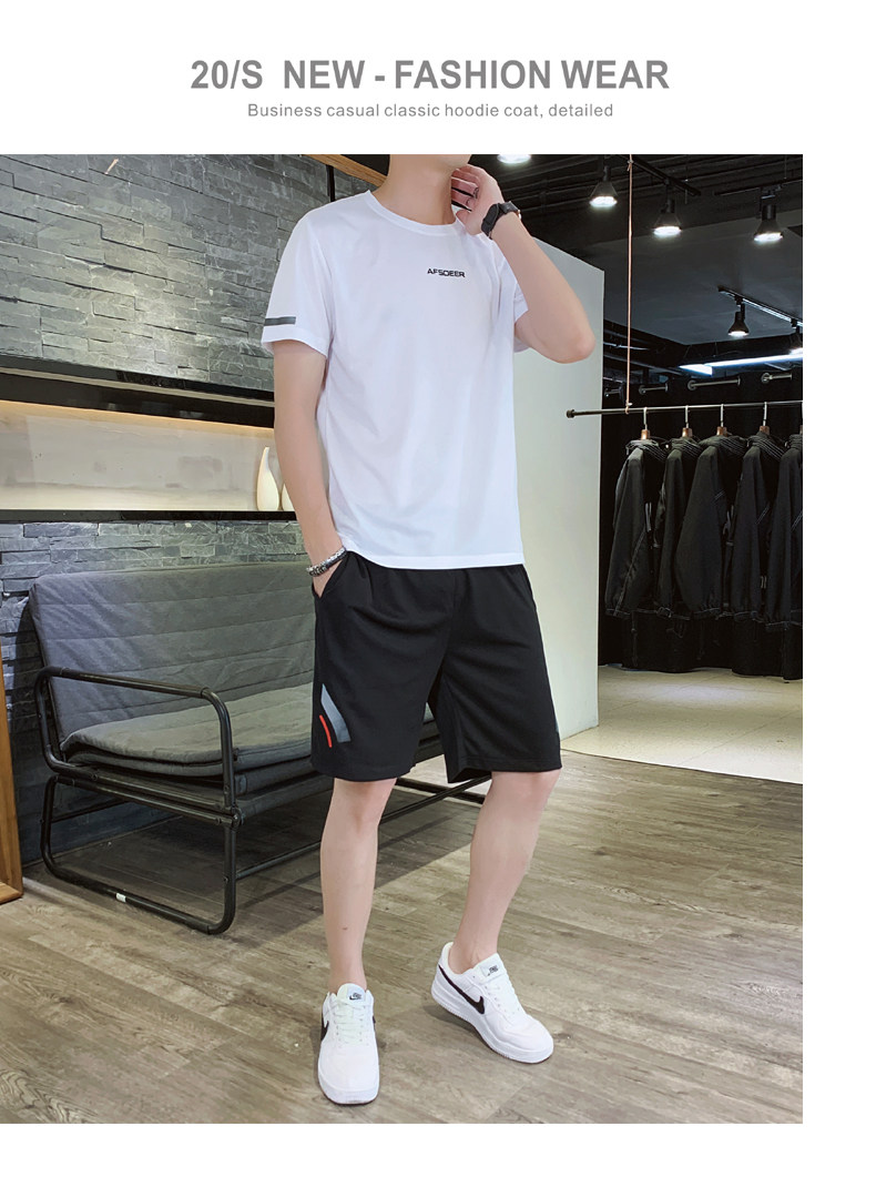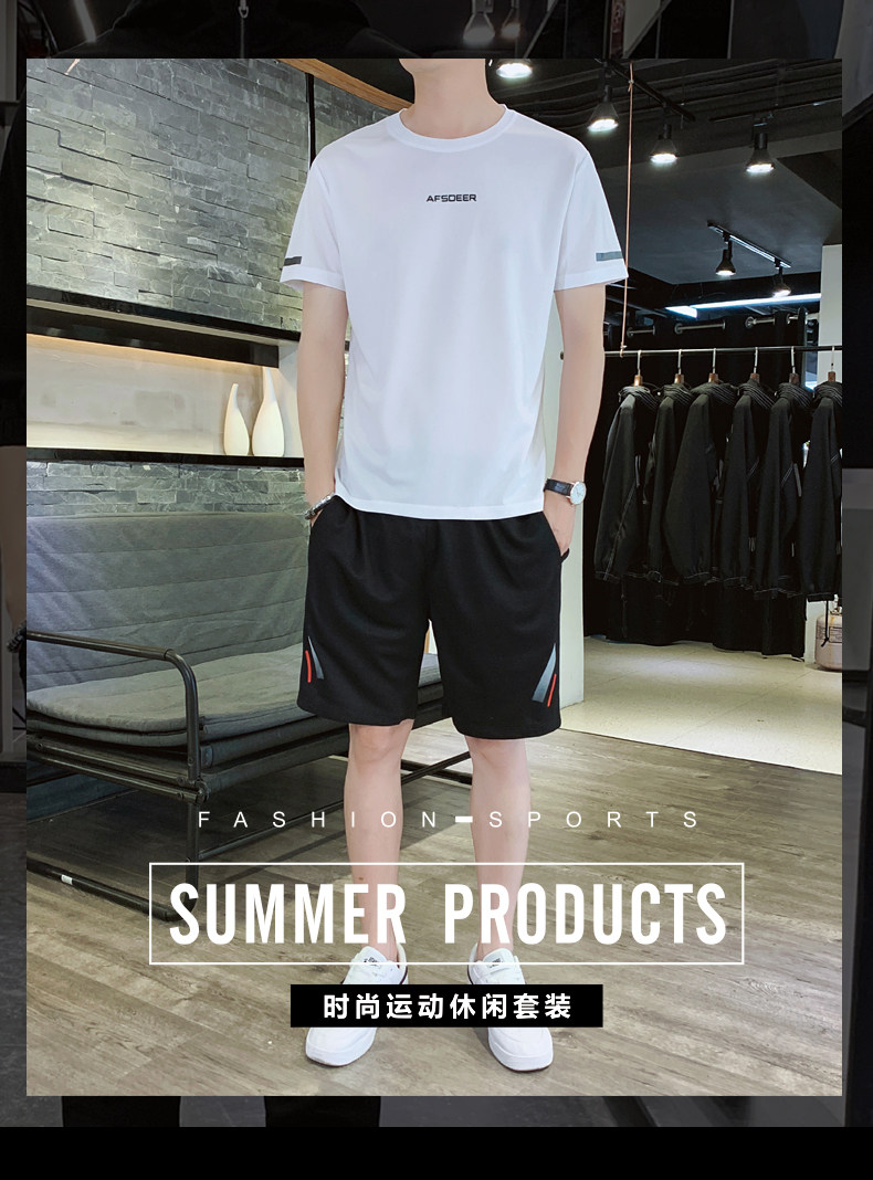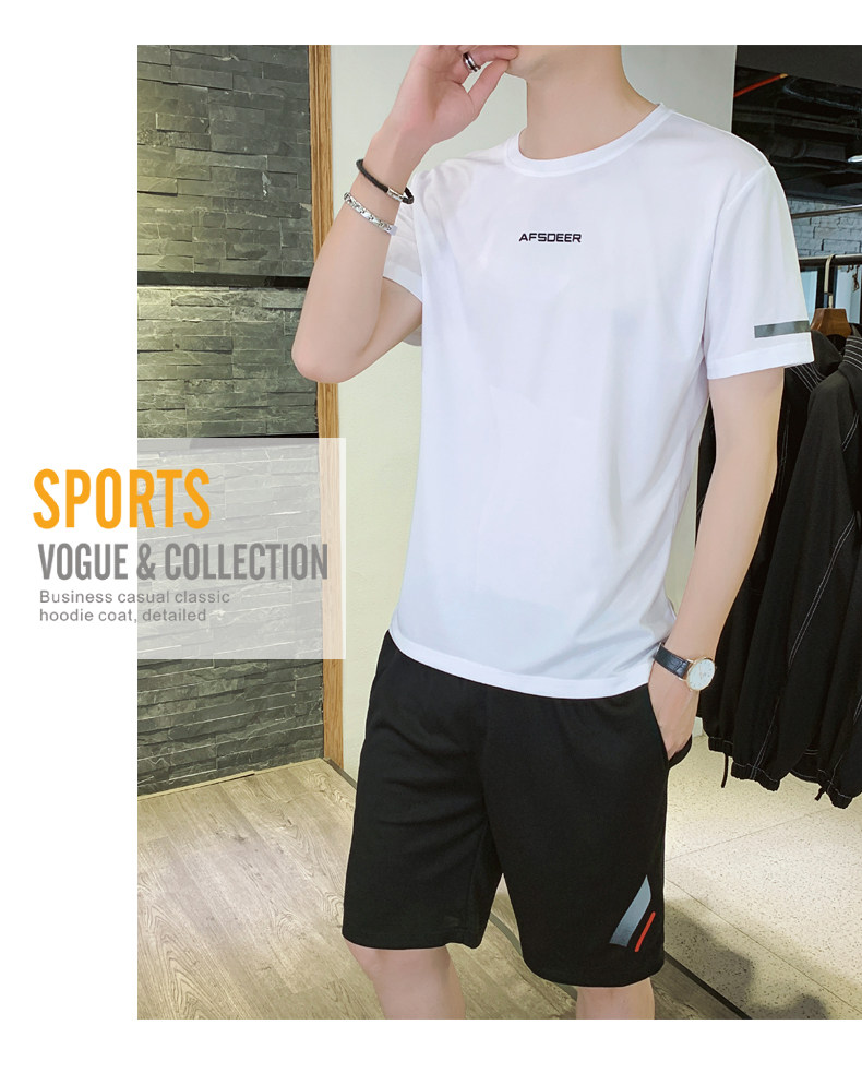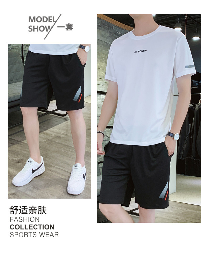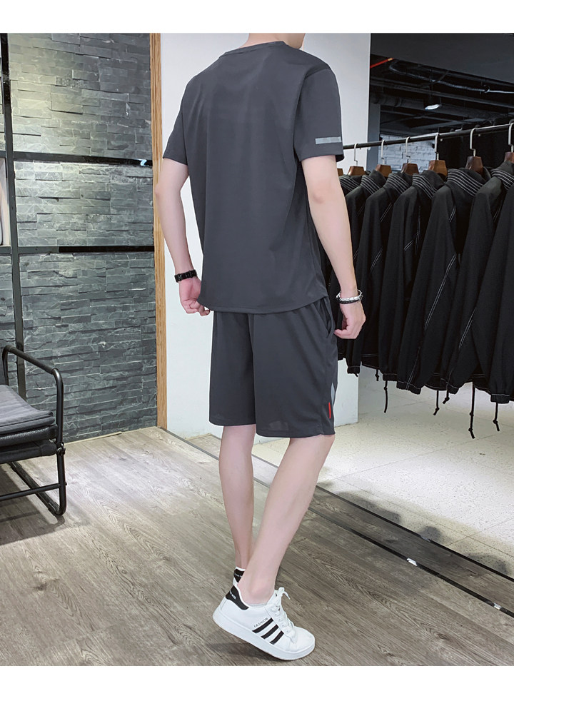 Мужской летний быстросохнущий трендовый спортивный костюм, тонкие шелковые шорты для отдыха, короткий рукав