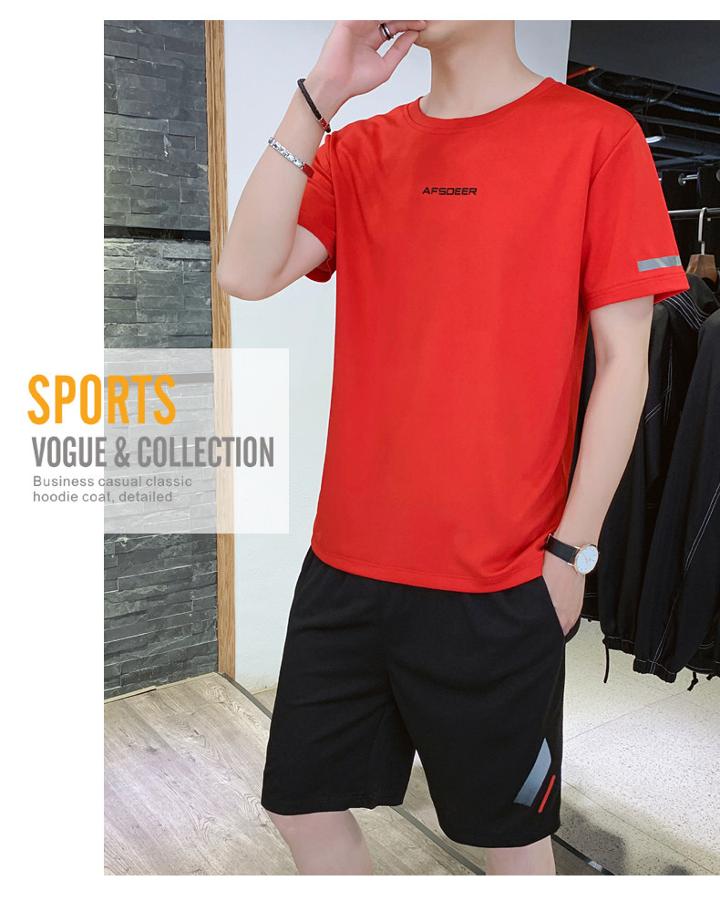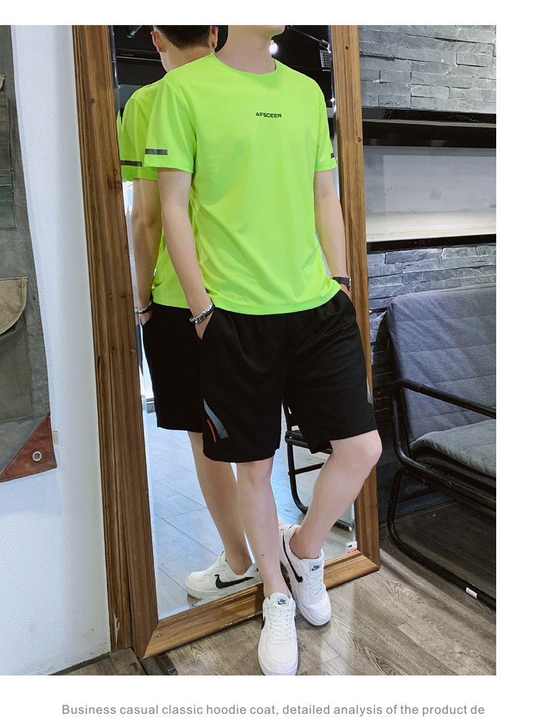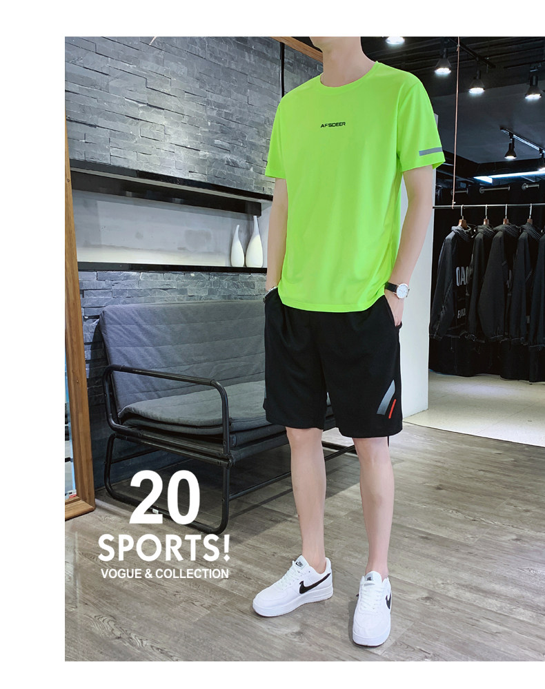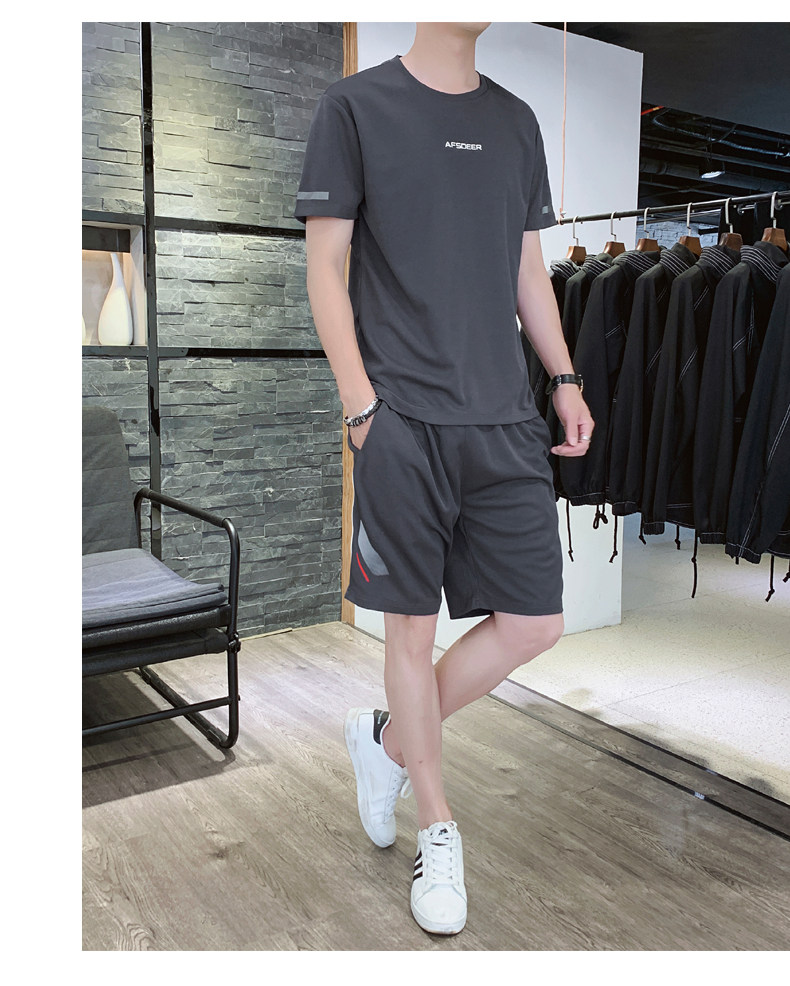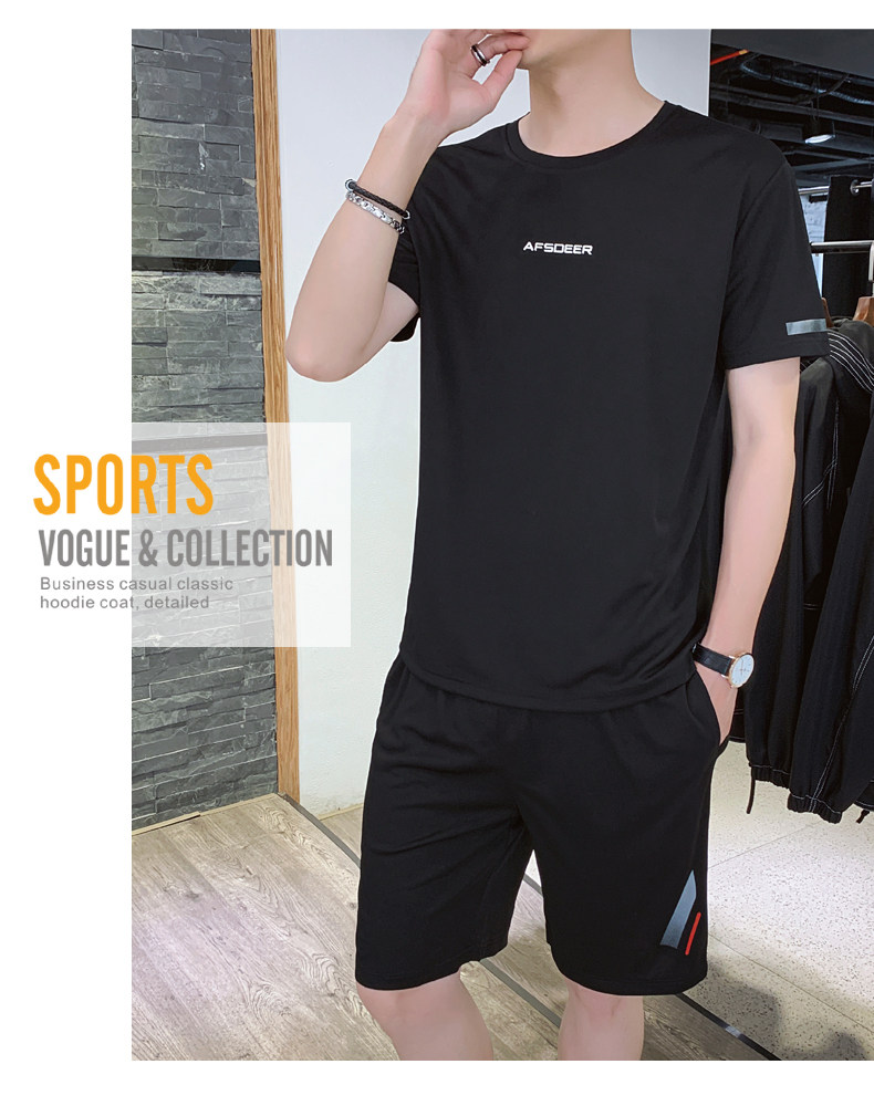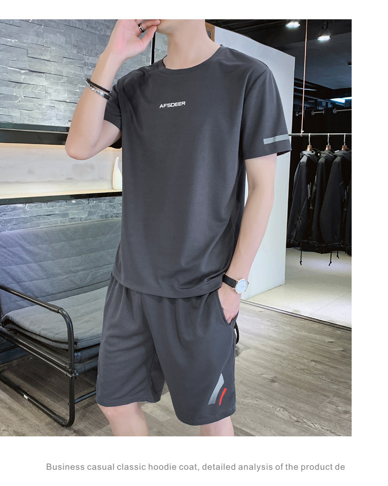 Мужской летний быстросохнущий трендовый спортивный костюм, тонкие шелковые шорты для отдыха, короткий рукав