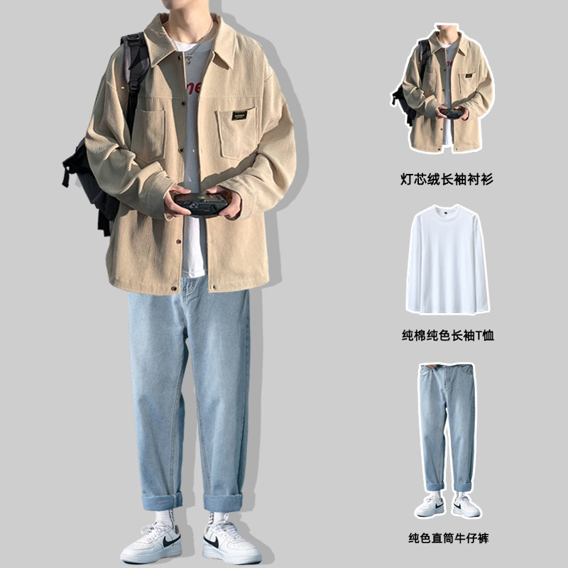 Осенняя вельветовая рубашка, спортивный костюм для отдыха, комплект, 3 предмета