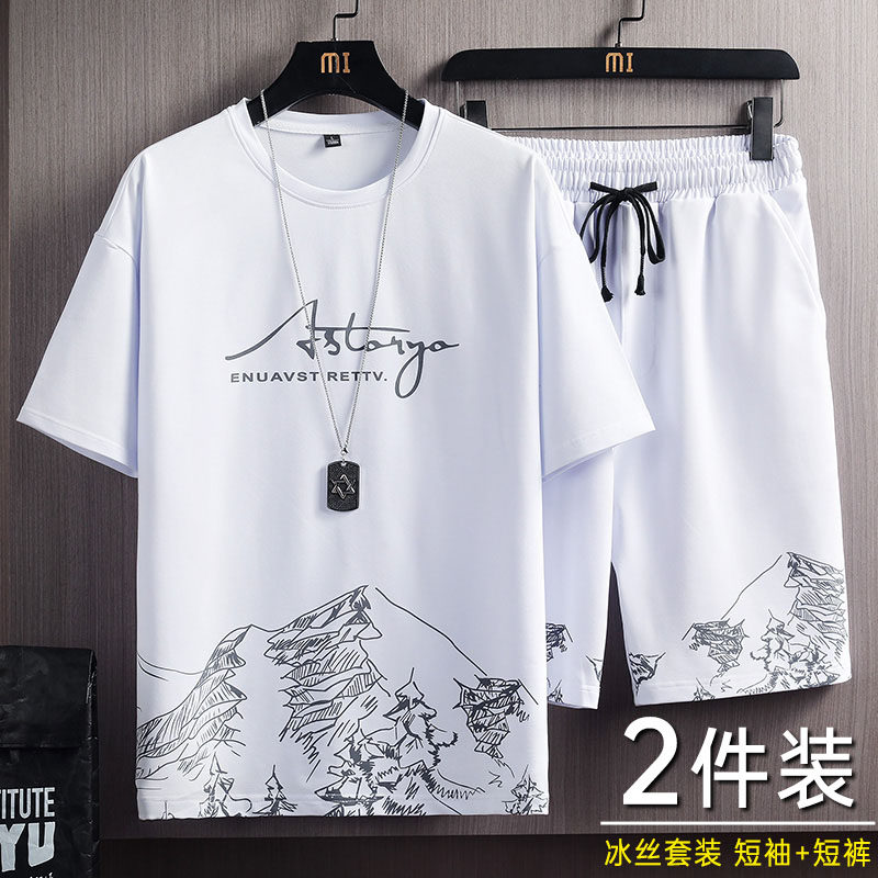 Мужской комплект, шелковая спортивная летняя осенняя быстросохнущая летняя одежда, для бега, подходит для подростков