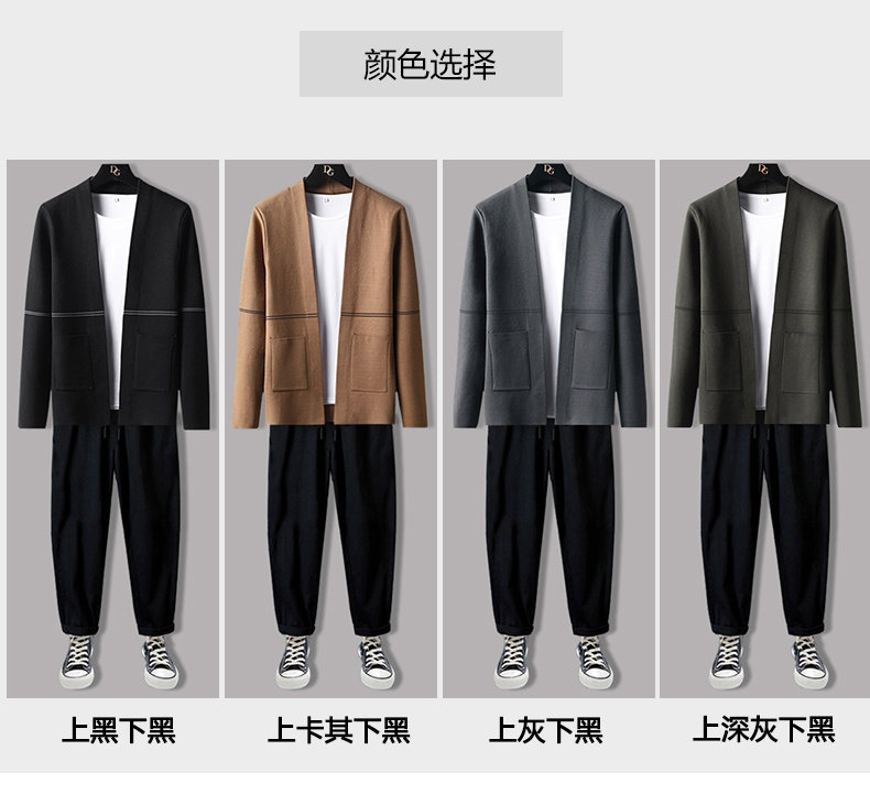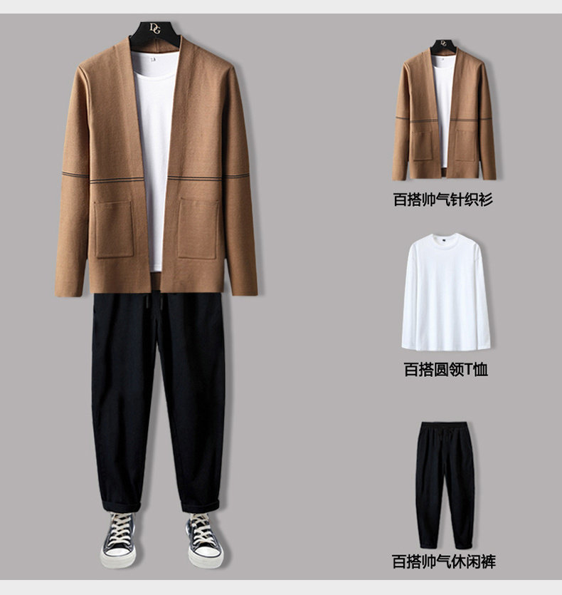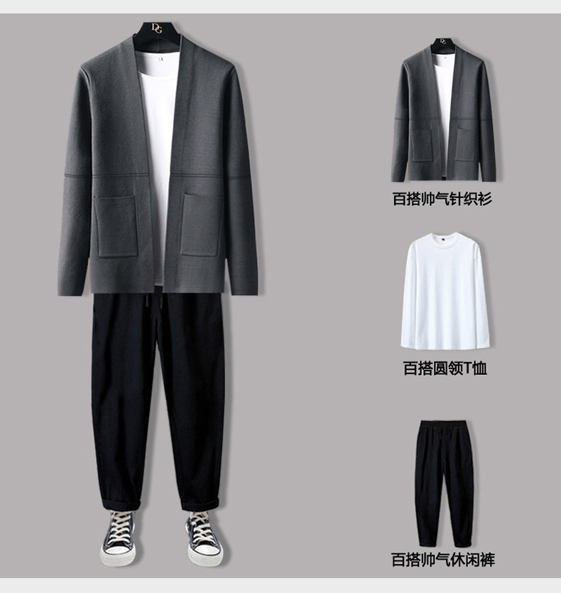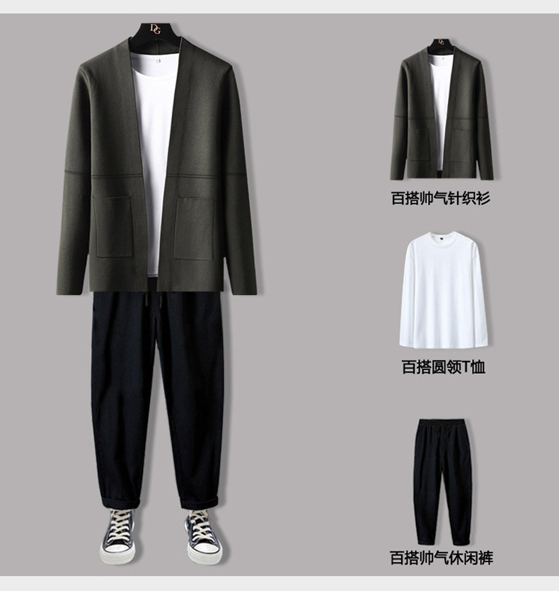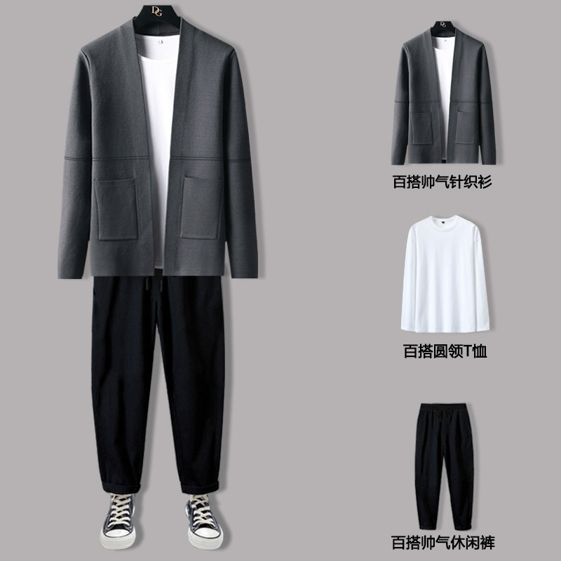 Мужской демисезонный осенний комплект, трикотажный свитер, куртка, трендовые штаны